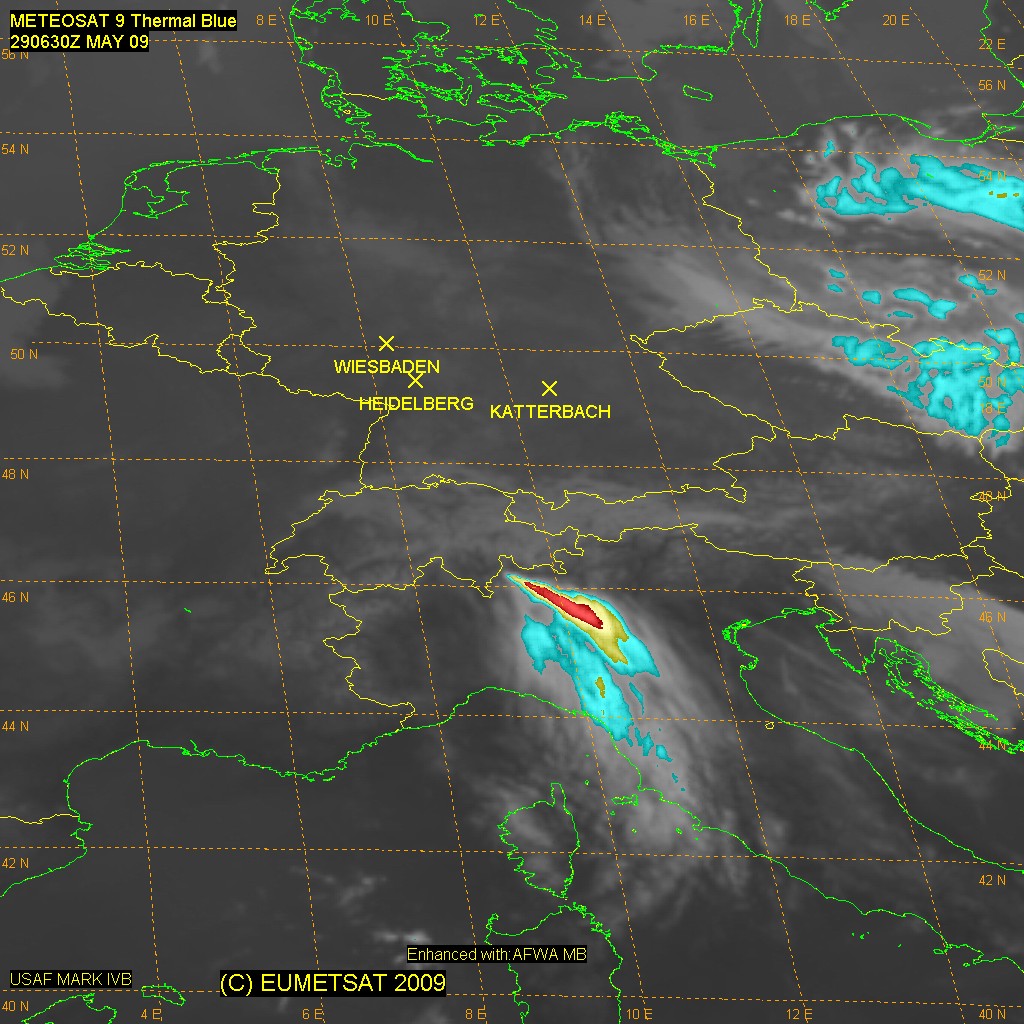 Farben sind von heute (mit den Daten von gestern 12Z) und dem GOES-