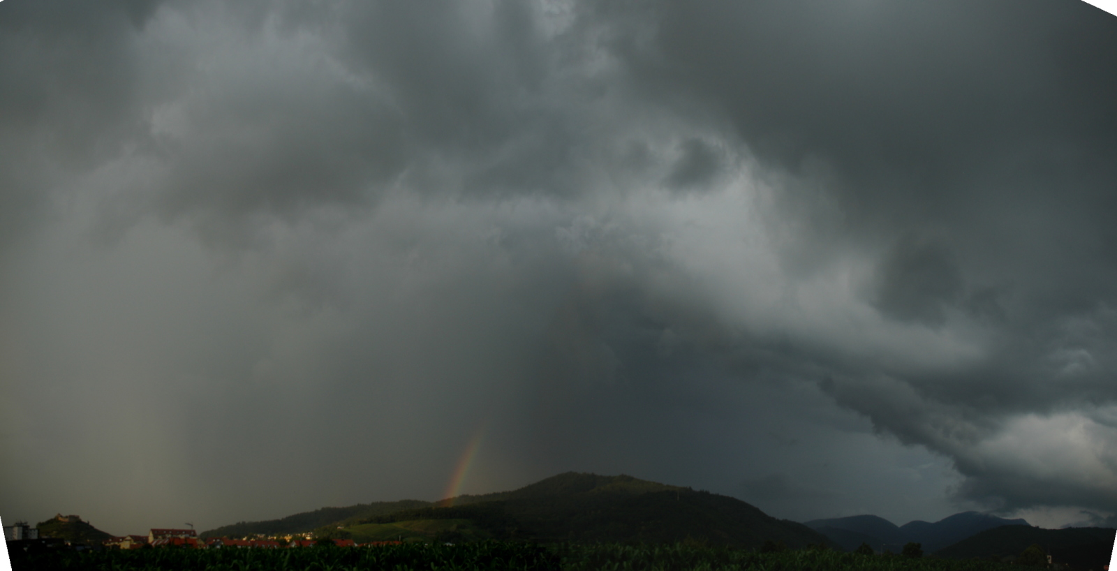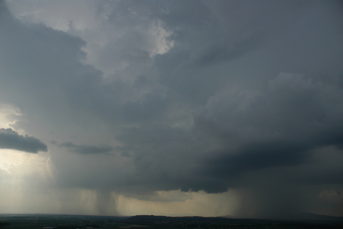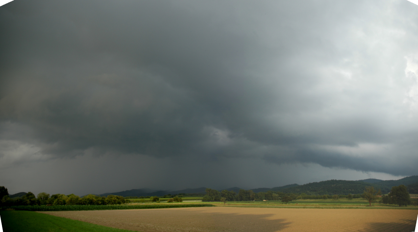 Hier noch ein Bilder zu den Zellen bei Freiburg am Nachmittag, von den abendlichen Zellen an den Vogesen und direkt südlich von mir habe ich keine Bilder gemacht. Am Nachmittag bildeten sich mehrere Zellen (4 habe ich gezählt) rund um den Kaiserstuhl im Rheingraben. Interessant war bei diesen Zellen, der jeweils kleine aber intensive Regenfuss, zum Teil auch klar davon getrennte Aufwindbereiche. Außerdem traten grösstenteils Erdblitze auf, Wolkenblitze bildeten die Ausnahme.
