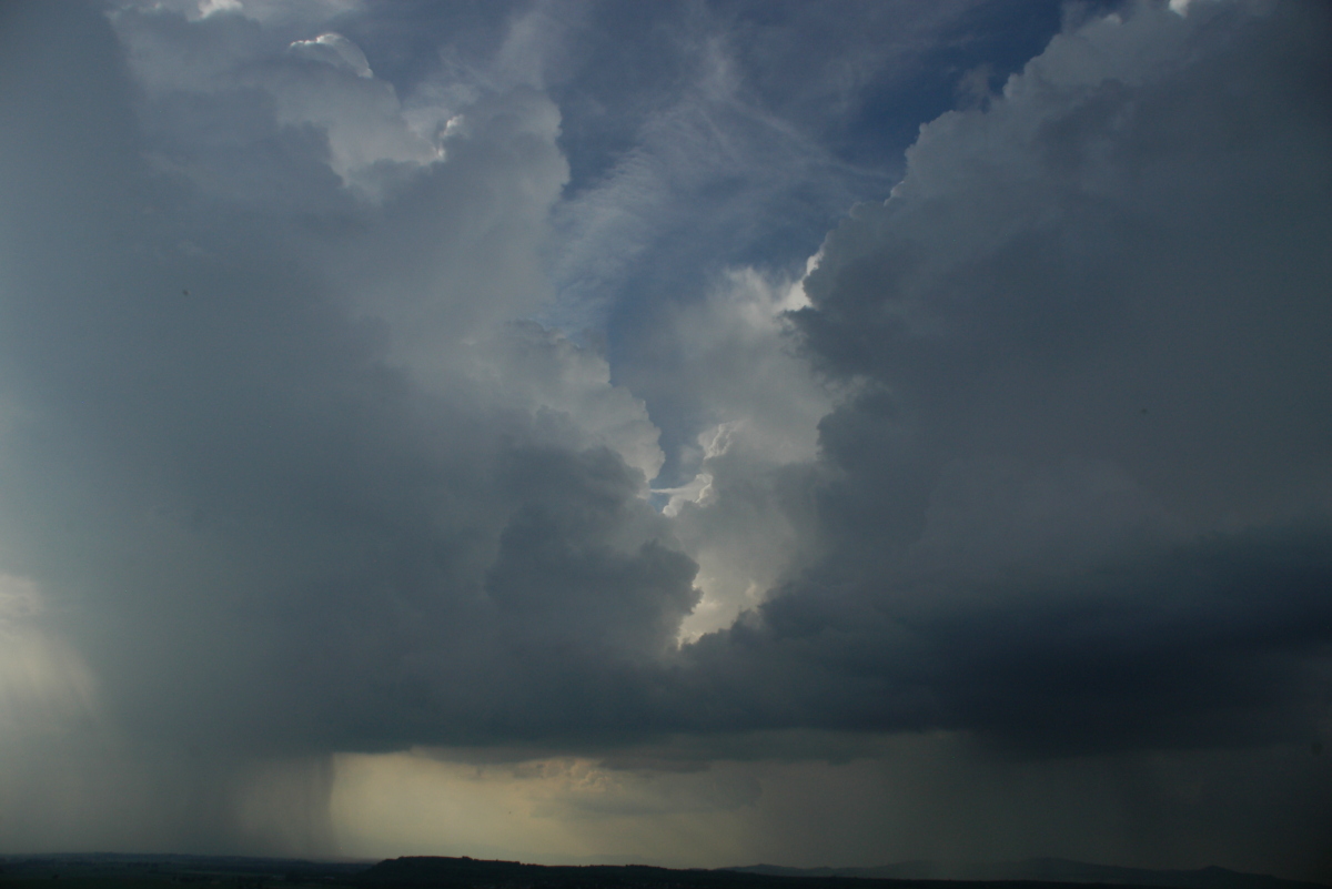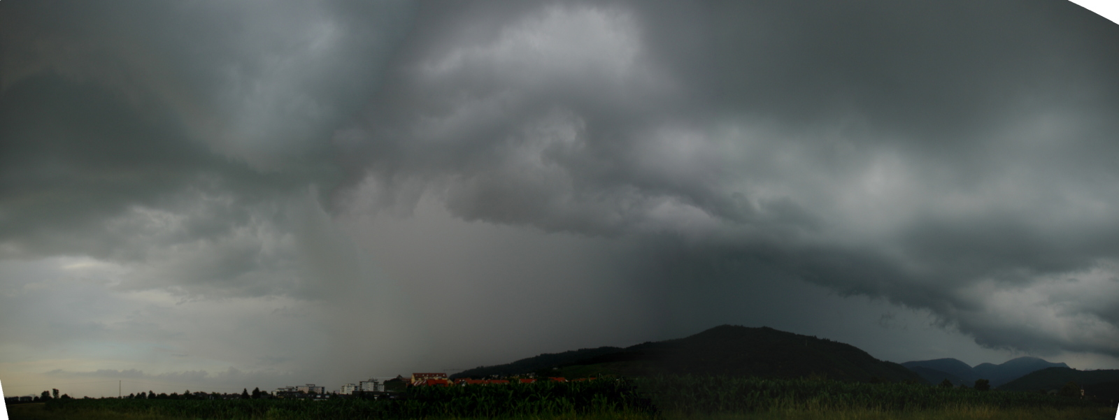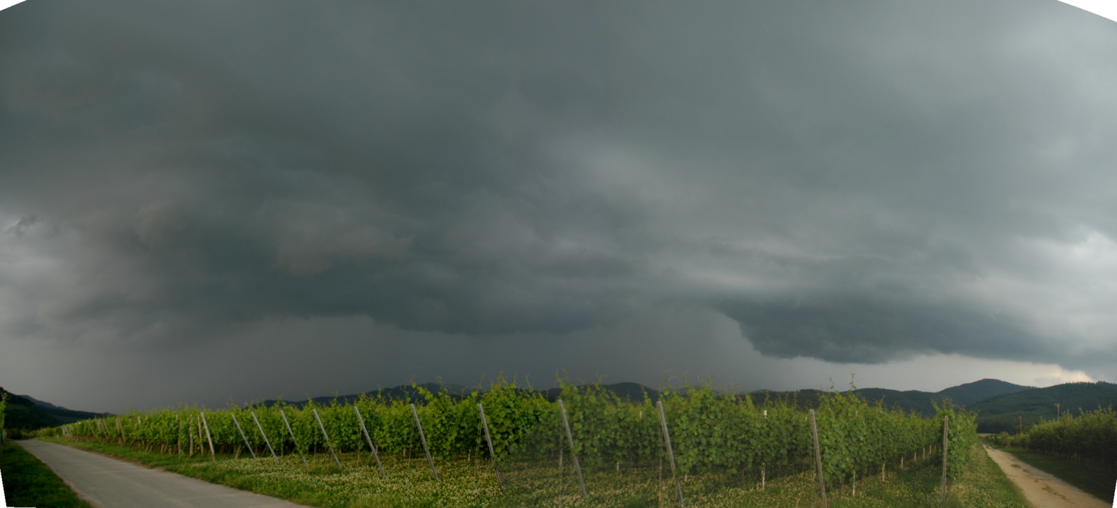 Hier noch ein Bilder zu den Zellen bei Freiburg am Nachmittag, von den abendlichen Zellen an den Vogesen und direkt südlich von mir habe ich keine Bilder gemacht. Am Nachmittag bildeten sich mehrere Zellen (4 habe ich gezählt) rund um den Kaiserstuhl im Rheingraben. Interessant war bei diesen Zellen, der jeweils kleine aber intensive Regenfuss, zum Teil auch klar davon getrennte Aufwindbereiche. Außerdem traten grösstenteils Erdblitze auf, Wolkenblitze bildeten die Ausnahme.