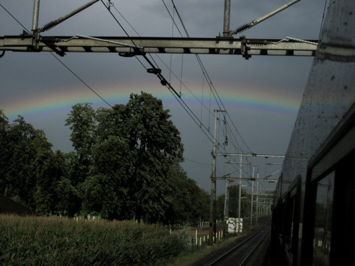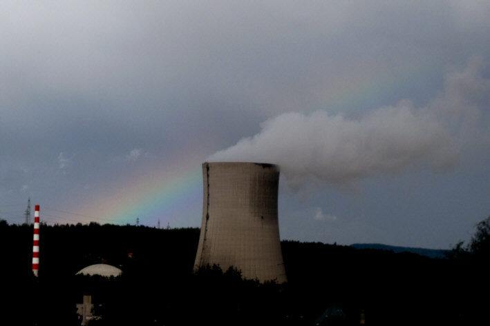 Ich erlebte heute eine äusserst interessante Zugfahrt von Lenzburg nach Olten. Das wechselhafte Westwindwetter zauberte einen Regenbogen an den Himmel. So schien es, als ob der Zug unter dem Regenbogen hindurch fahren würde. Das Atomkraftwerk Gösgen mit Regenbogen sieht auch ganz ungewöhnlich aus. Die Aufnahmen entstanden um 16.45 h bei Dulliken (SO).