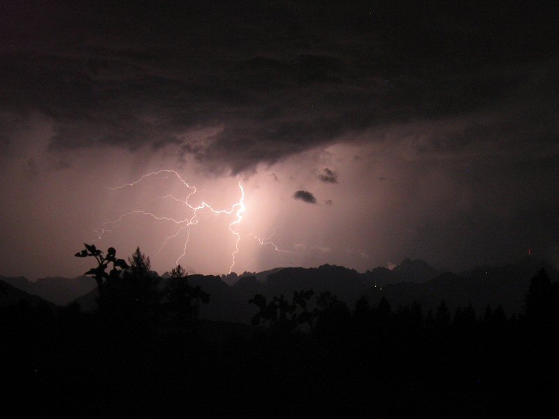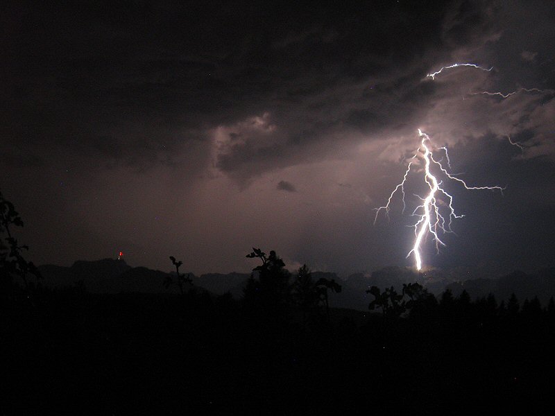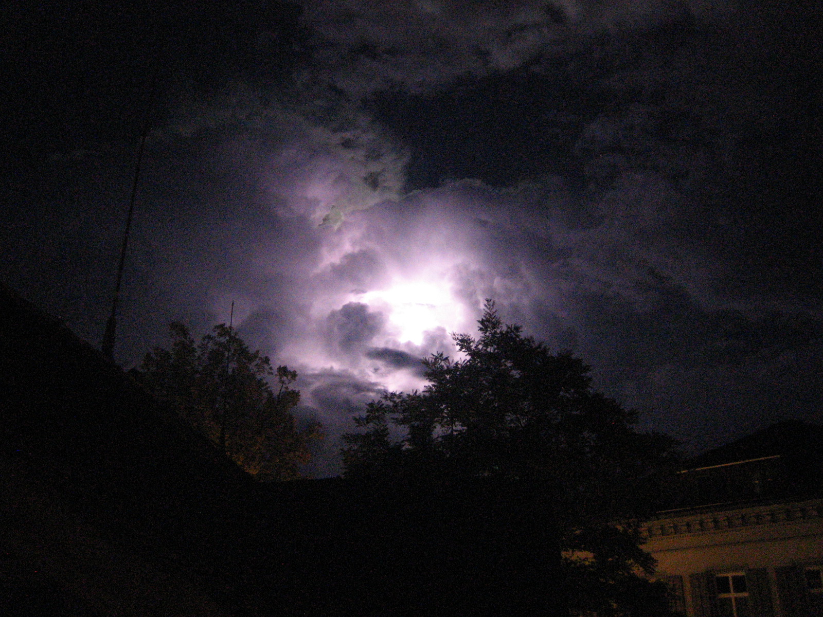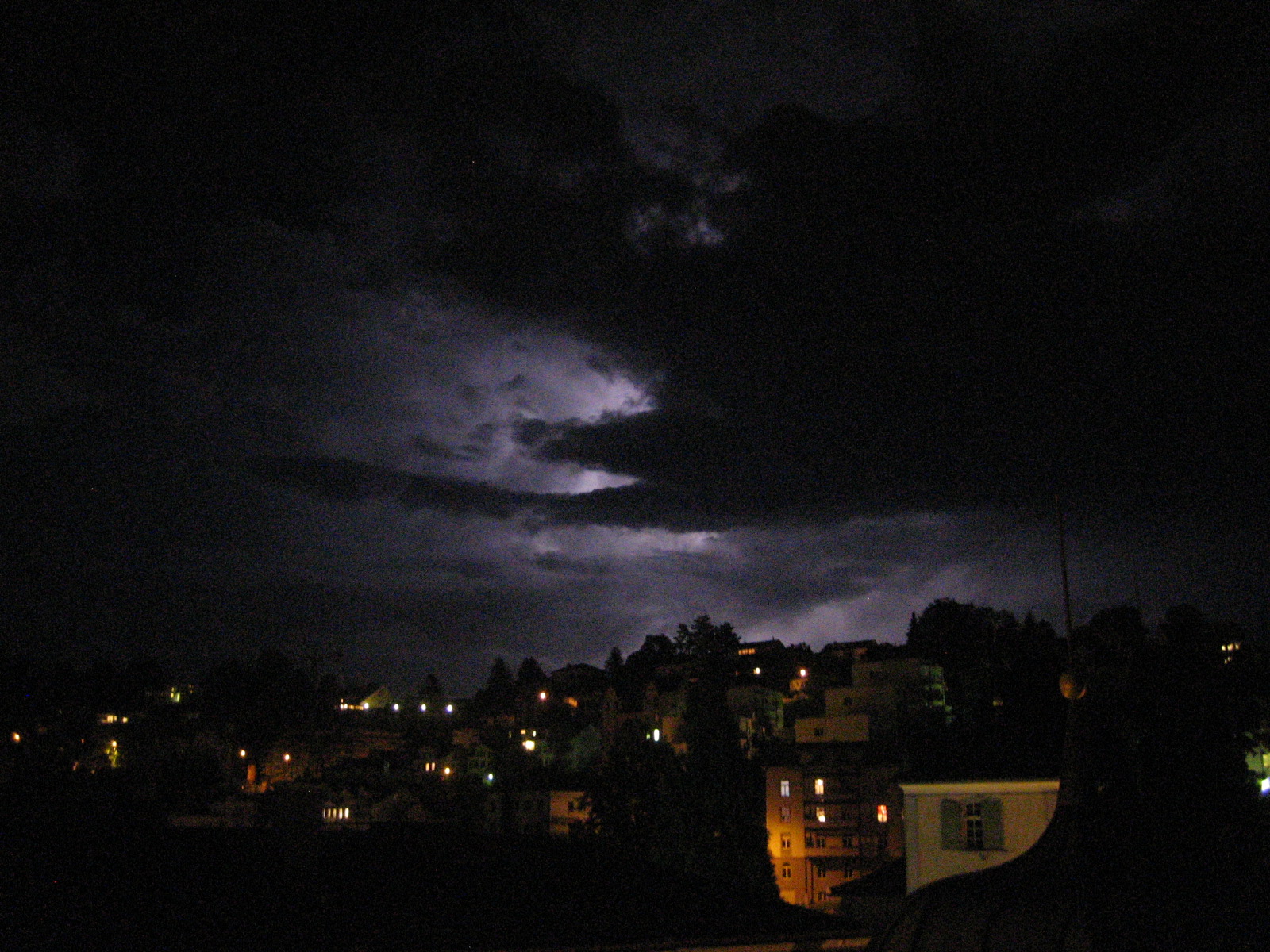 Von Winterthur in Richtung Osten sah man im Mondlicht diese resige Zelle, in der es permanent blitzte. Einige Blitze waren sogar so hell, dass die Häuserfassaden in Winti aufleuchteten, obwohl die Zelle rg. 70-80 km entfernt war. Phantastisch!