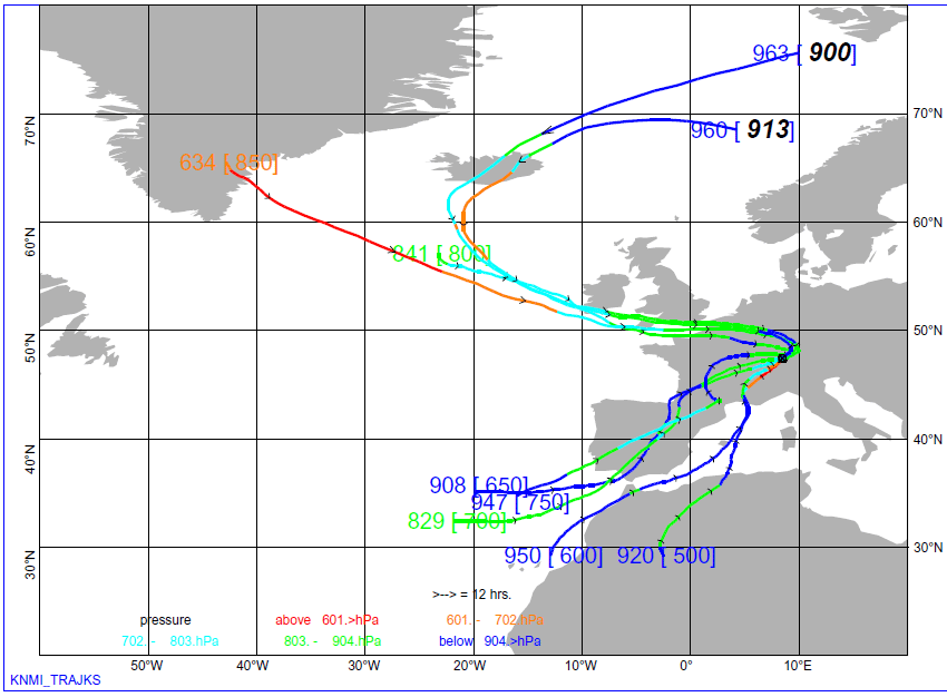 Auf nächsten Montag zeichnet sich ein kurzer break im Süd-, bis Westgebläse ab. Die Warmluftzufuhr macht vorübergehend Pause, eine KF driftet langsam ins Land rein: