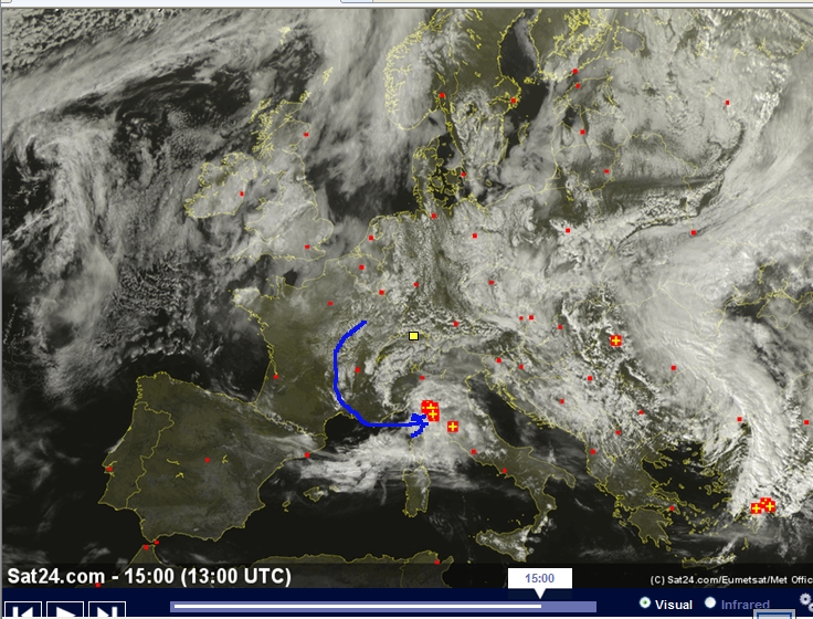 Interessant finde ich die gegenwärtige Lage (die man z.B. im Loop von Sat24 sehr gut beobachten kann).