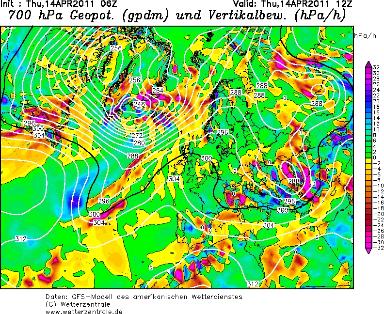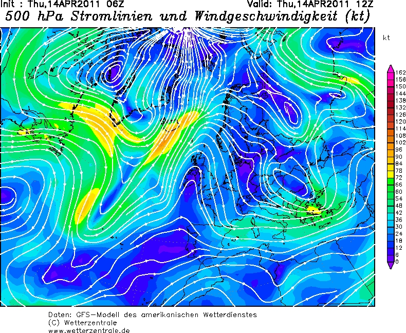 Als ich gestern die GFS-Karten für Europa mir kurz im Forecast für heute 14.04.2011, 12z und 15z, angeschaut habe, waren noch rd. 700 J/kg CAPE östlich des Golf von Genua gerechnet (Italiens Westküste bei Viareggio). Seit heute Nacht ist aber davon nichts mehr übrig; GFS hat zurückgerudert - was mich ehrlich gesagt etwas erstaunte. Ein Mini-Genuatief (2010 hPa) war gestern schon erkennbar. Item.