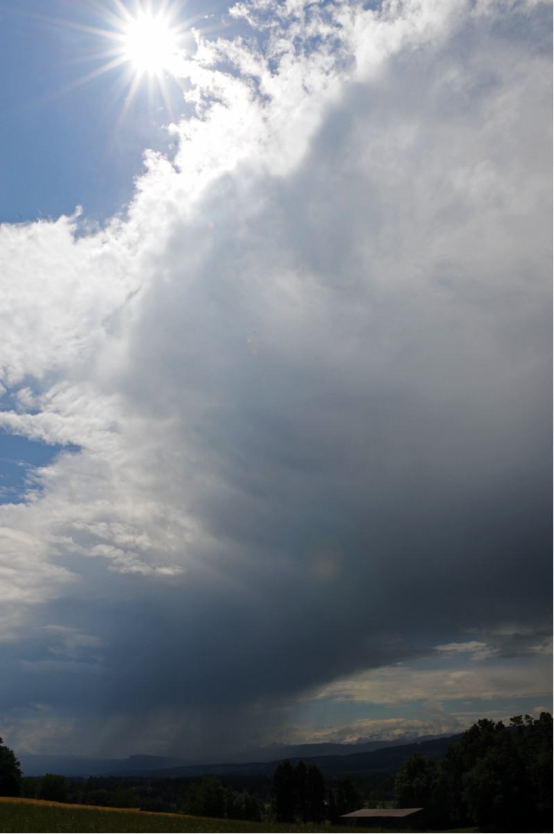 . Die sterbende Regenfront aus den Alpen hinterliess hier bloss so viel, dass es von meiner Davis nicht erfasst wurde, die Strassen aber kurzzeitig feucht/nass waren. Binnen Minuten (