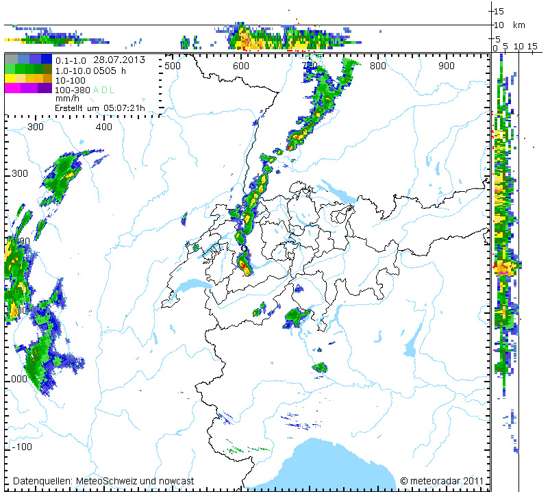 Und mit geschlossenen Fenstern habe ich dann noch das Gewitter selber genossen, mit sehr hoher Blitz- und Niederschlagsintensität. Ich kann die kleine Niederschlagsmenge laut Wetterstation fast nicht glauben, so wies bei uns geschüttet hat, und die Dachtraufe übergelaufen ist.