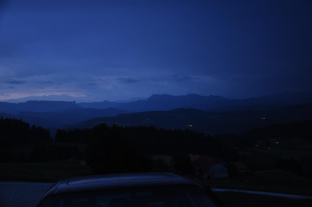 Ich konnte eh nicht schlafen in meiner 33 Grad warmen Dachwohnung, da hab ich dann mit offenen Fenstern den Aufzug der Zelle genossen, die mit enormem Wetterleuchten daherkam.