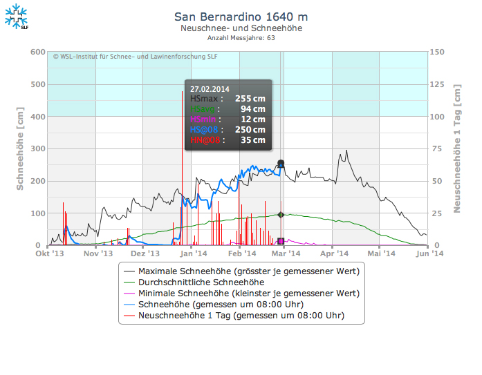 ...und in San Bernardino gibt's ein neues Winter-Schneemax. Nur wenige cm unter dem 63-jährigen Wintermax