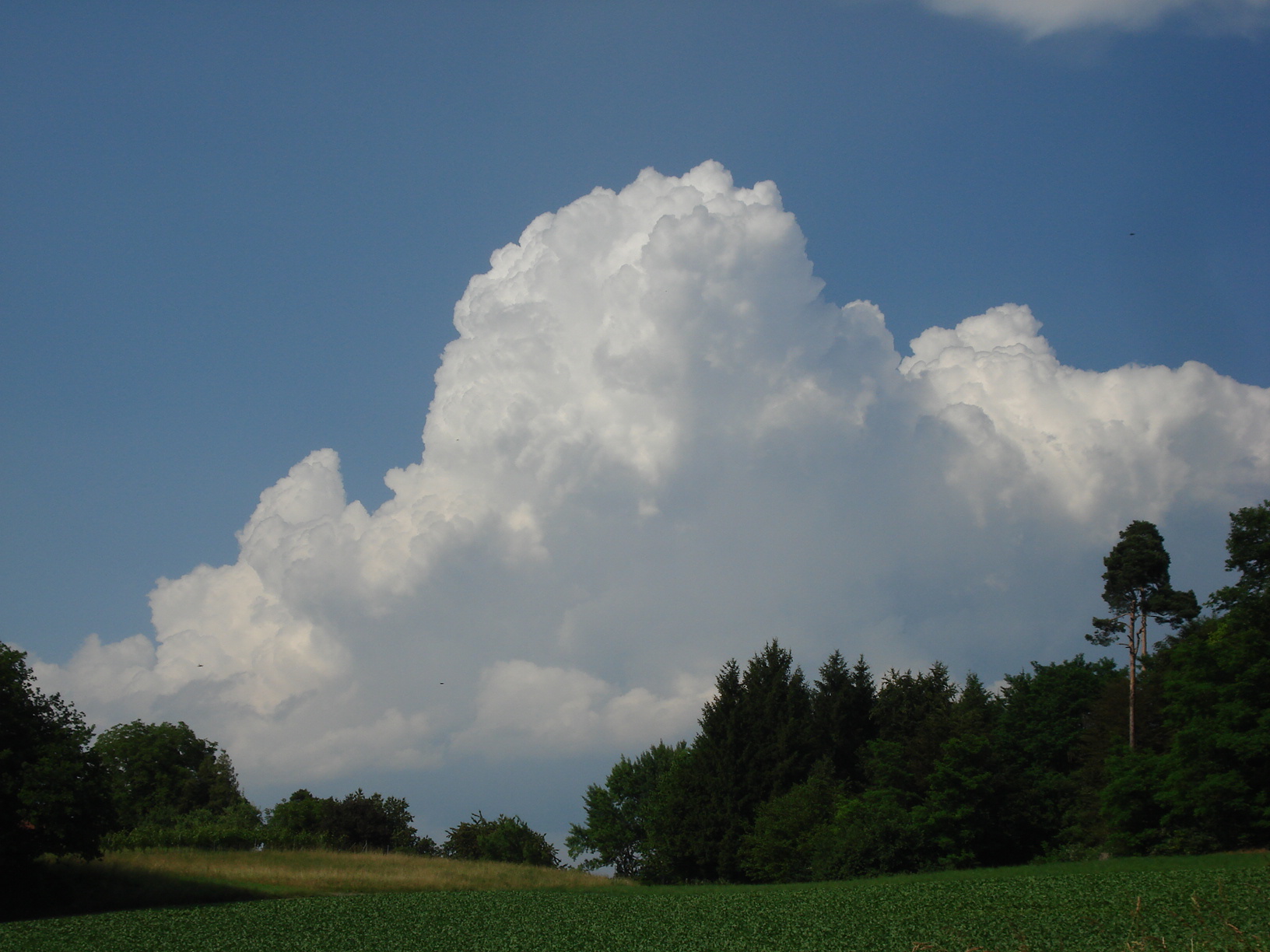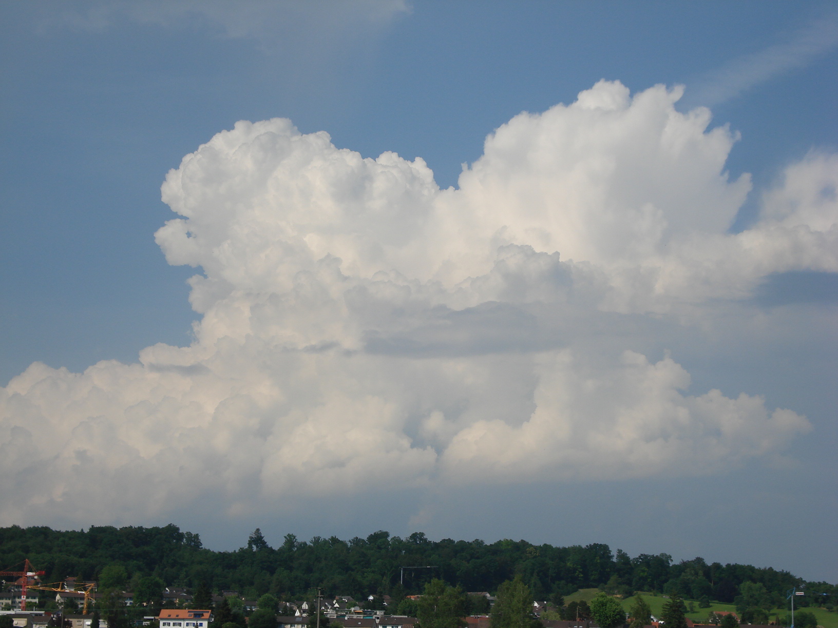Konvergenz am südlichen Schwarzwald/nördlichen Aargau (Nordwest versus Nordost) triggetr ind er immer noch schwülen Luftmasse eine Zelle nach der anderen, die dann mit schwachen nordwestlichen Winden (15-20 km/h) gemätölich nach Südosten wandern.