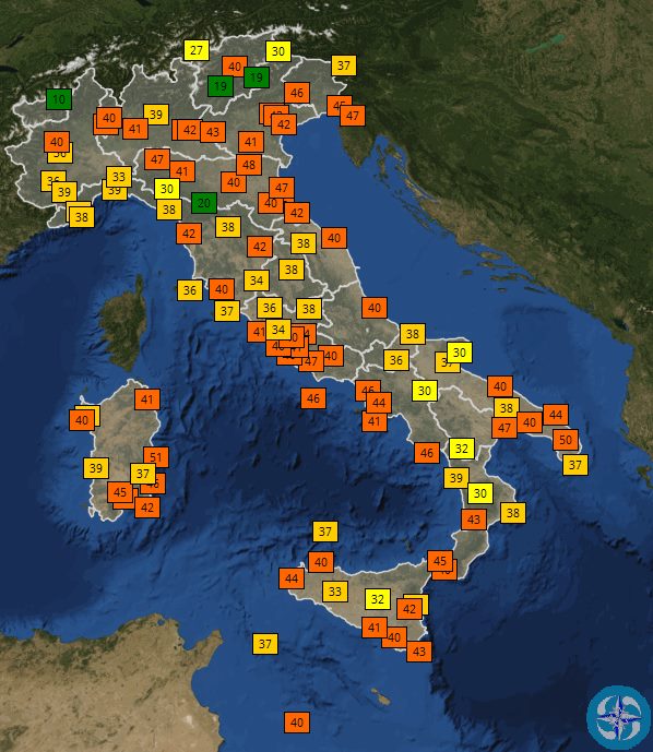 Mittwoch, 22.07.15, ist in Südapulien (Heimatort), "normal" heisse temperaturen registriert worden, um die +38°C. Mit ca.80% Luftfeuchtigkeit, war es extrem schwül und die gefühlte Temp. betrug +50°C!! ORT: GALATINA - LECCE