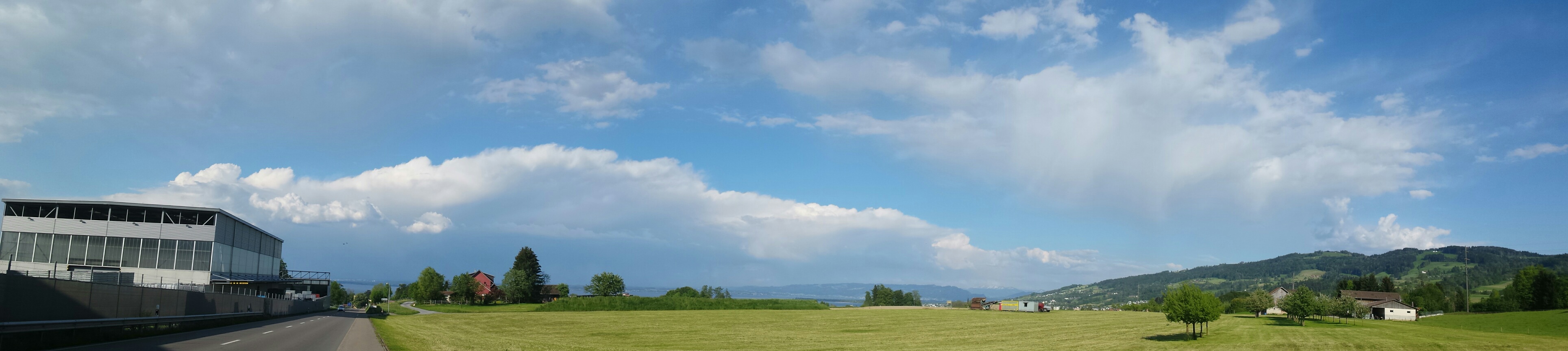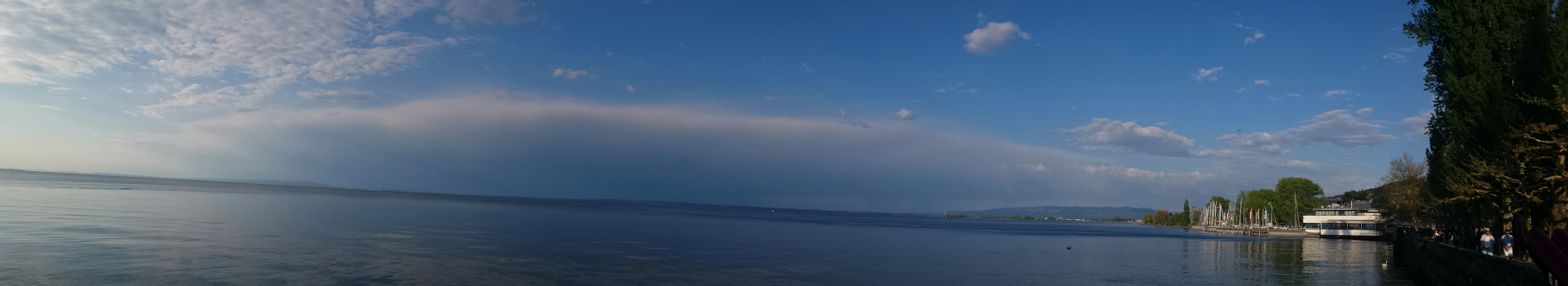 Ausgangs Mörschwil machte ich dieses Foto. Es zeigt die Multizellen auf der anderen Bodenseeseite. Rechts oben ist noch eine kleine Wolke mit Virga zu sehen.