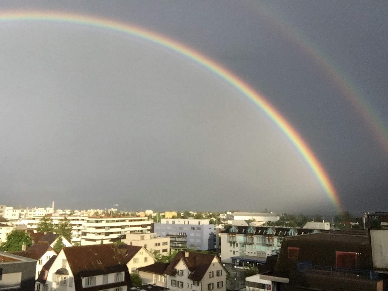 In Rapperswil SG wurde ich ausserhalb der Arbeitszeiten zwar nur immer gestreift, zum Abschluss gab es dann aber einen sehr intensiven Regenbogen zu bestaunen.
