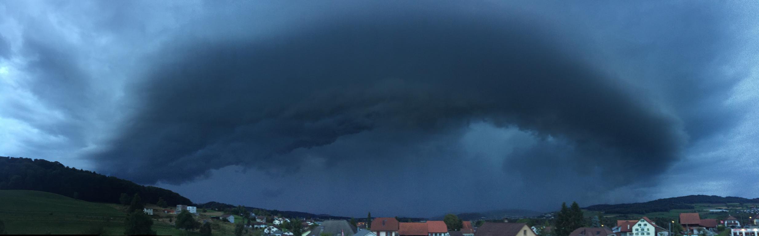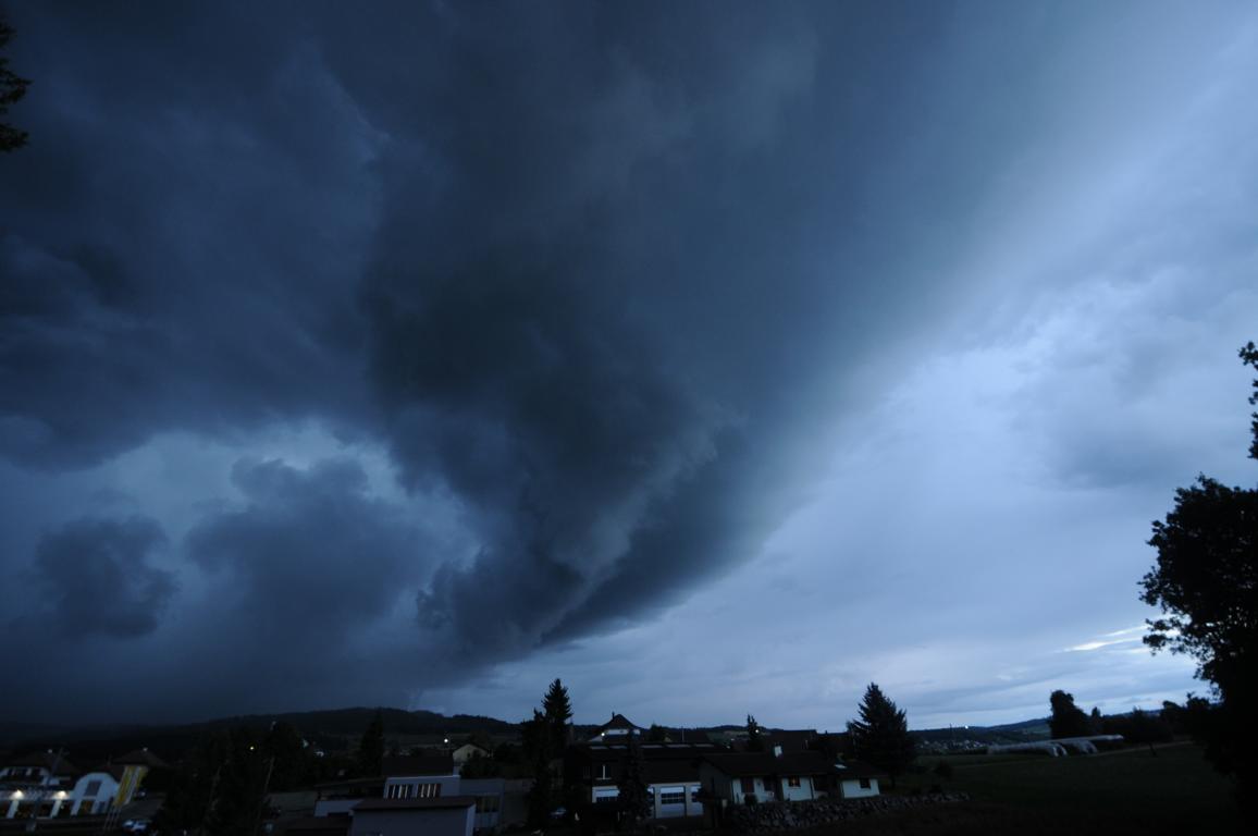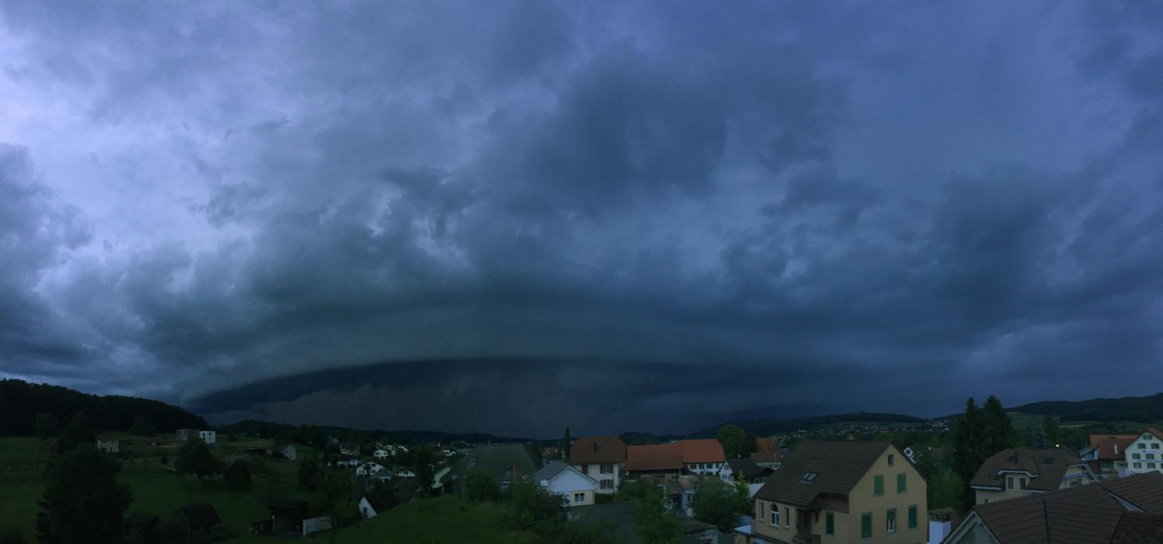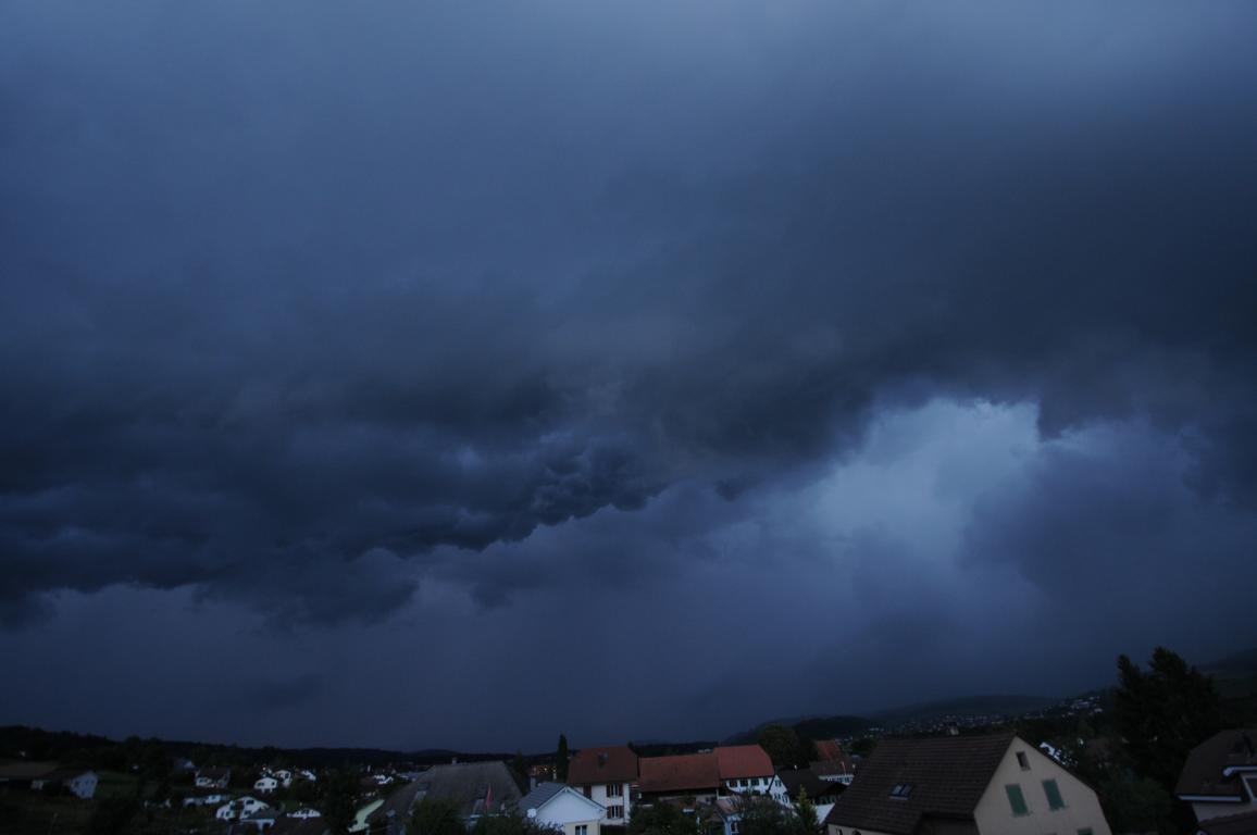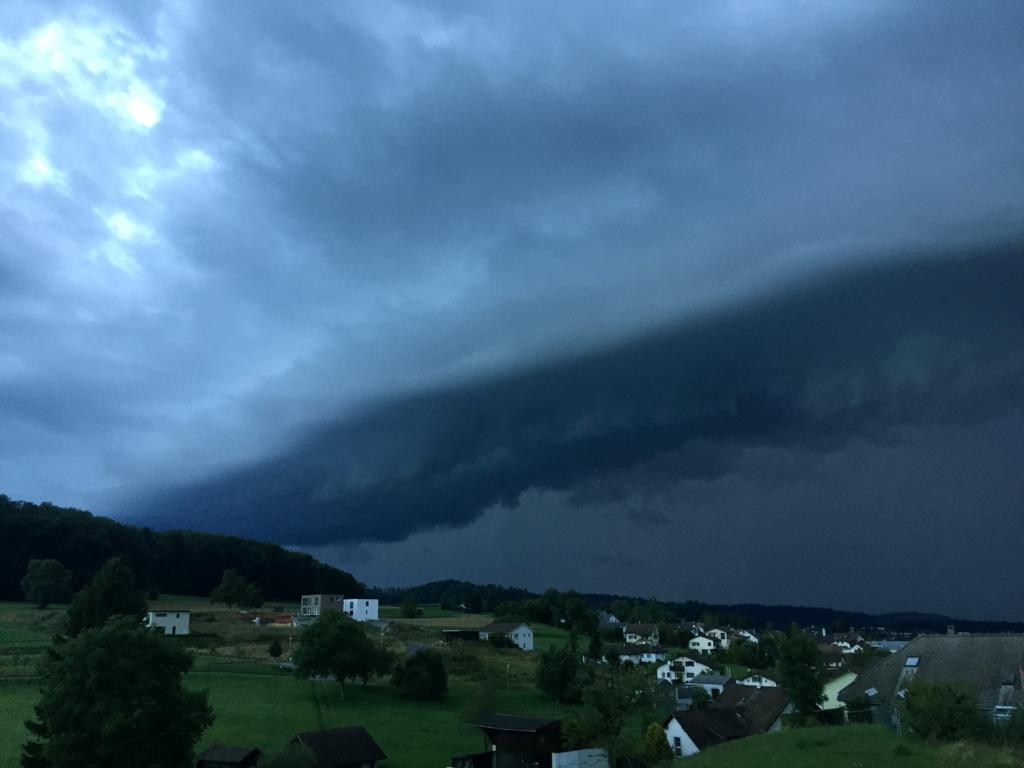 Um 21 Uhr überquerte eine gut ausgeprägte Shelfcloud das Seetal und brachte Blitz, Donner und Starkregen.