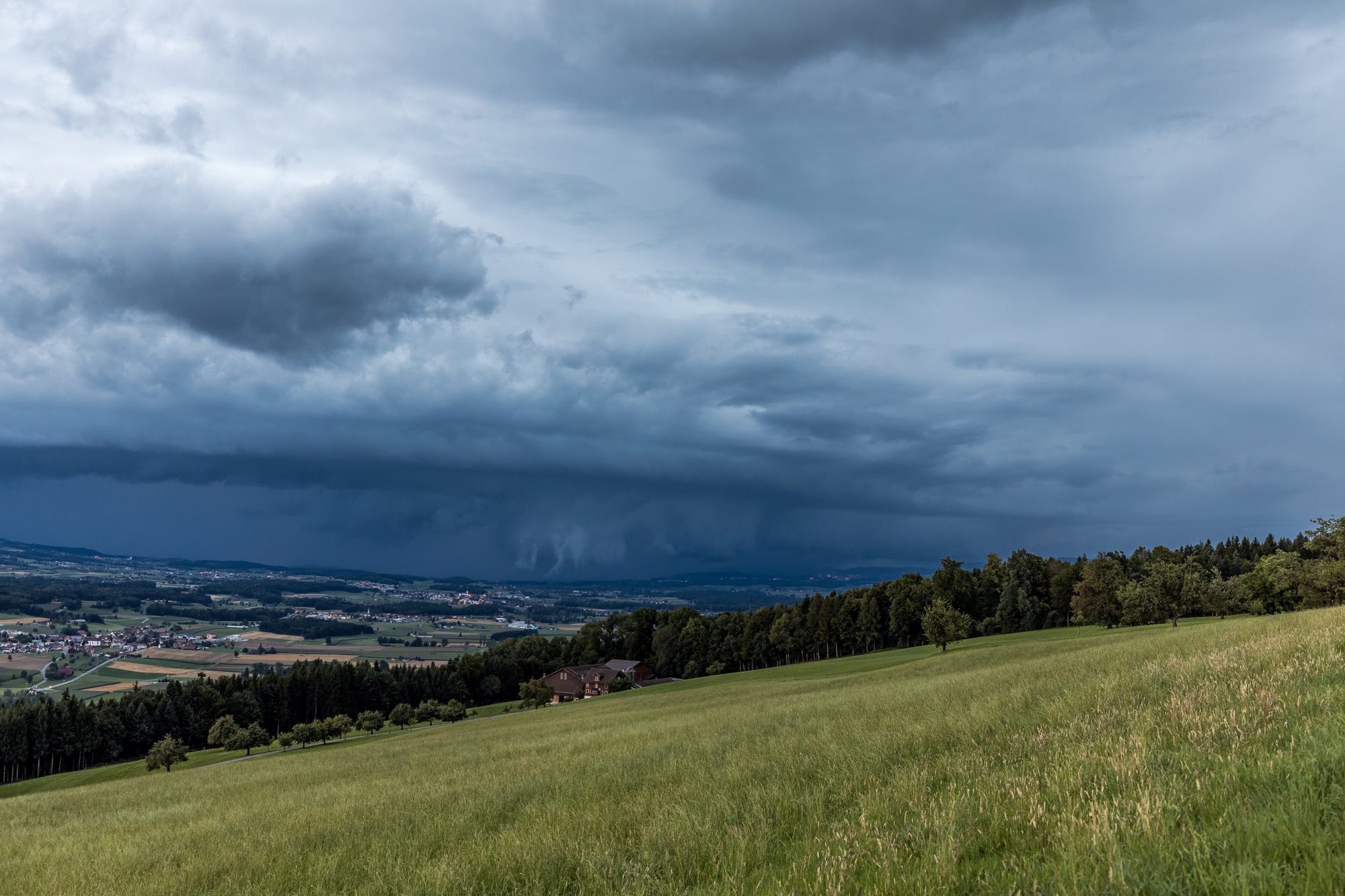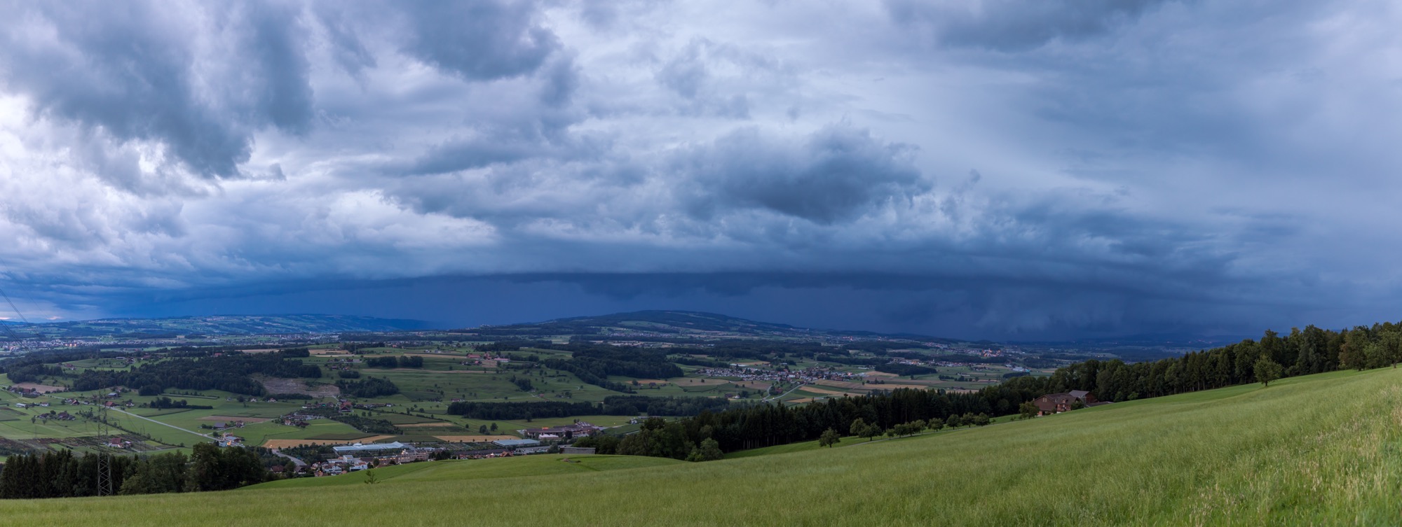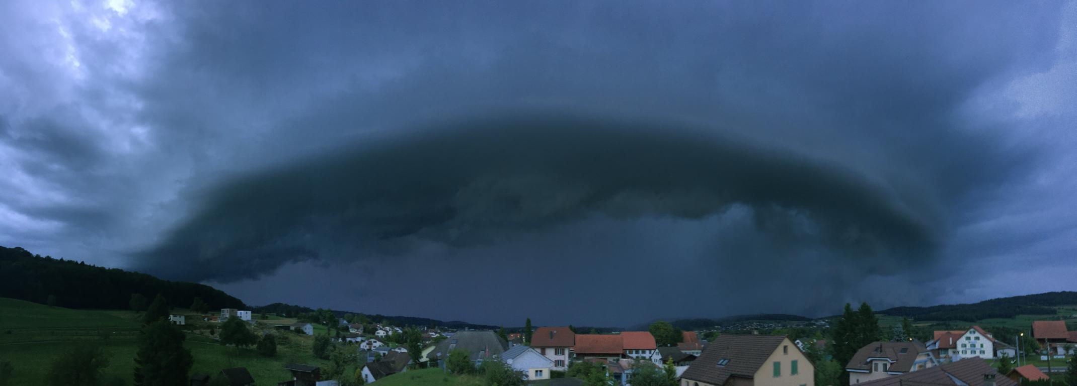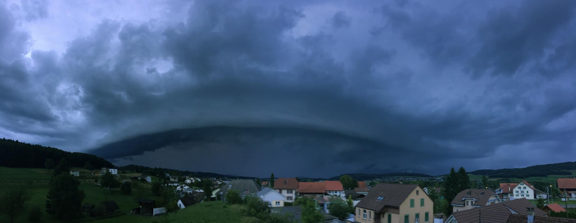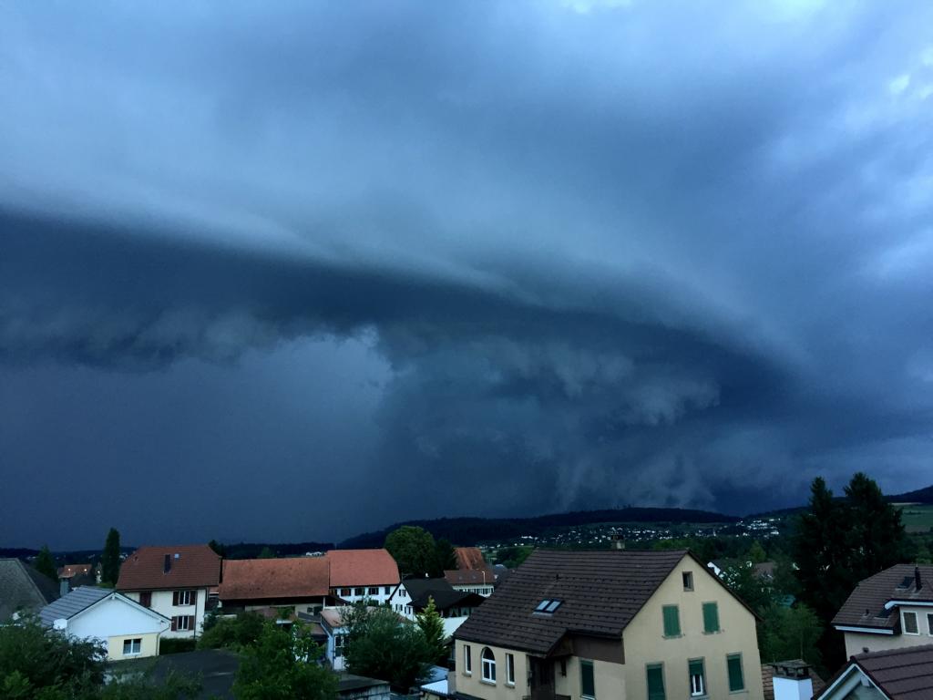 Um 21 Uhr überquerte eine gut ausgeprägte Shelfcloud das Seetal und brachte Blitz, Donner und Starkregen.