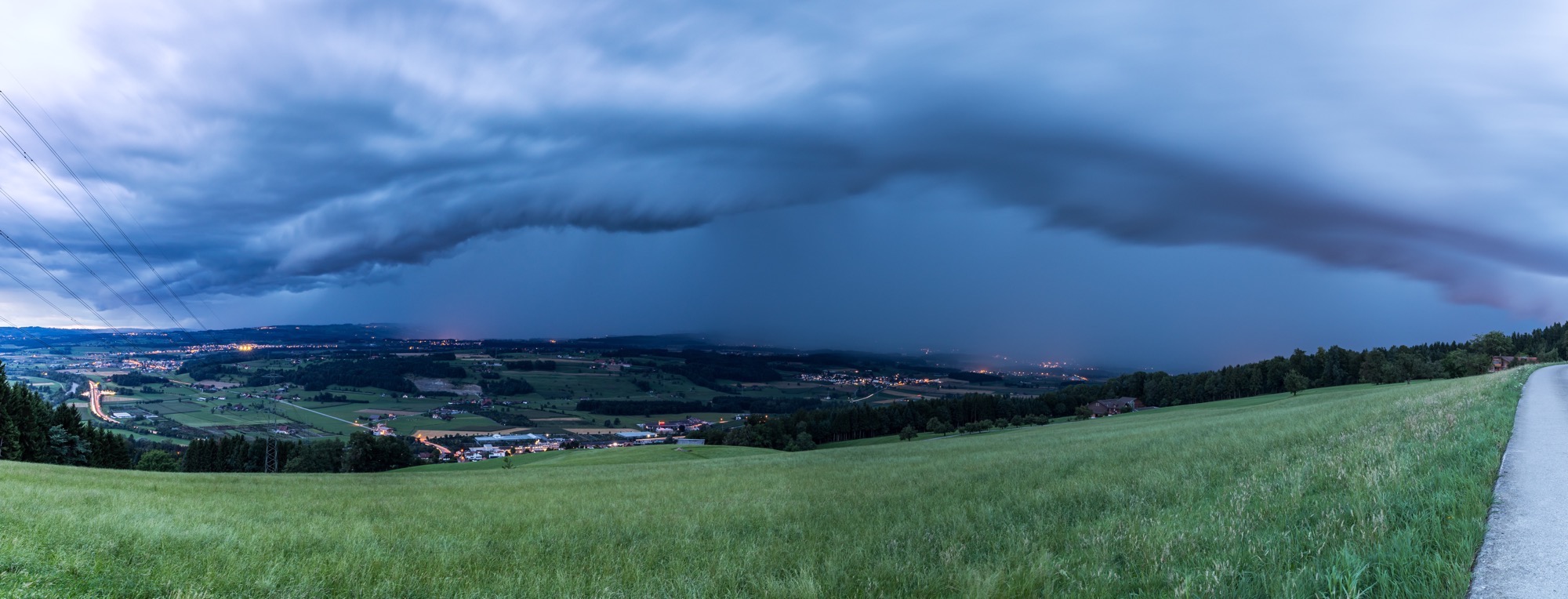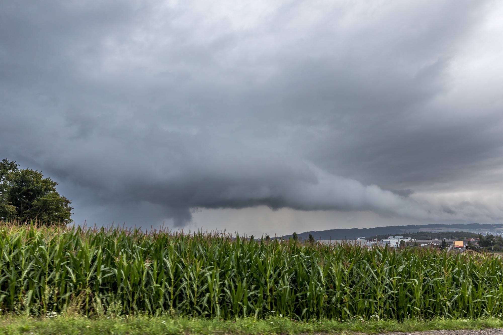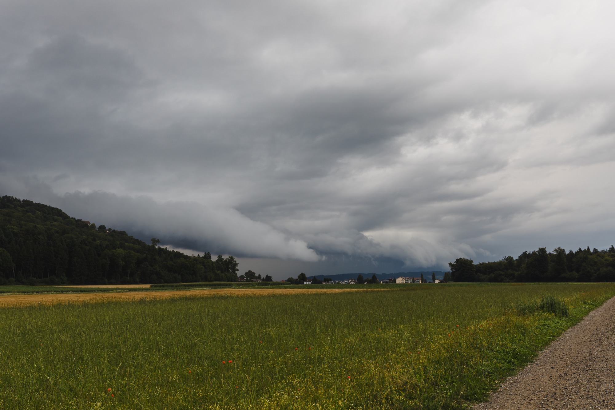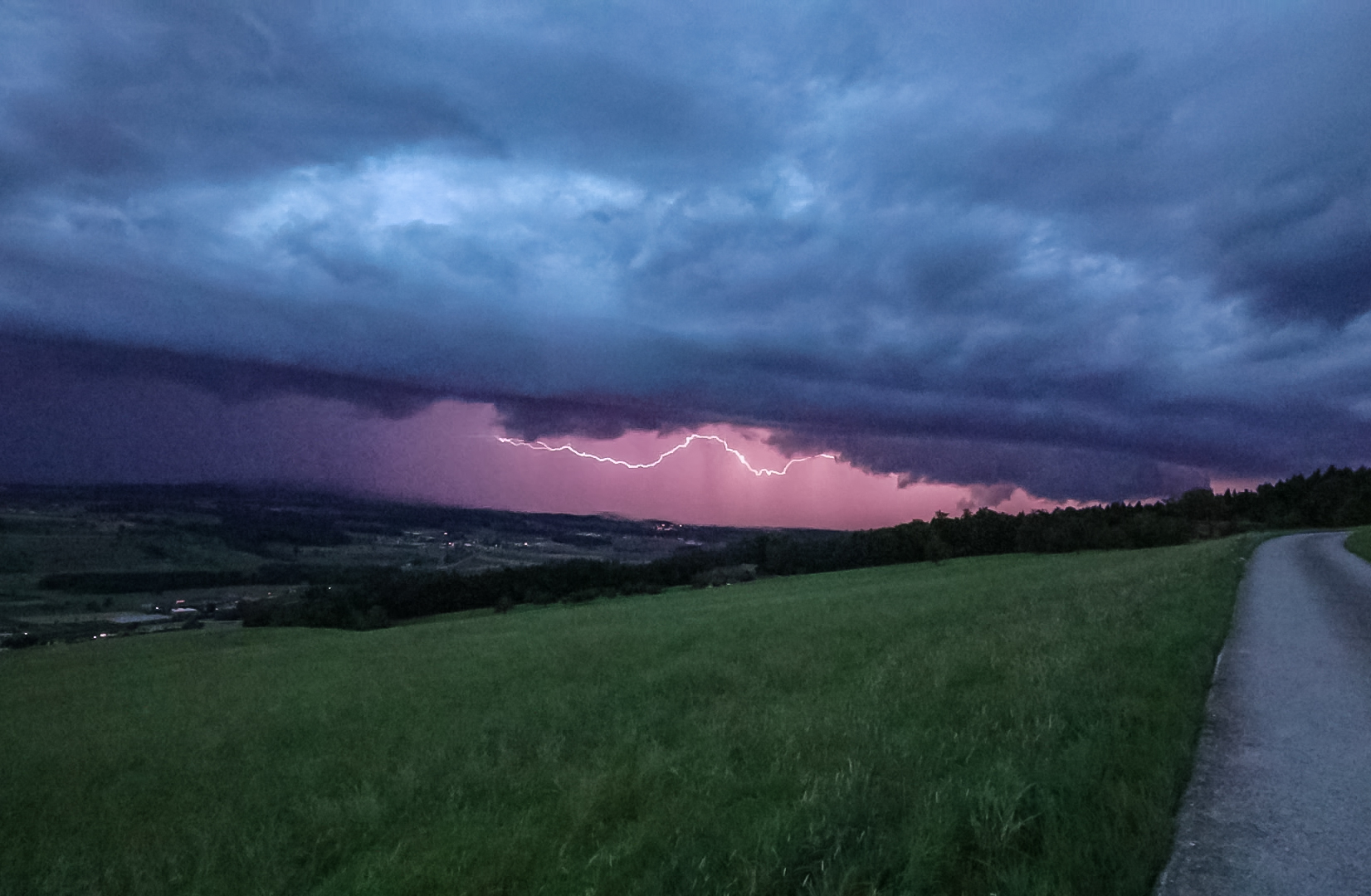 Um 21 Uhr überquerte eine gut ausgeprägte Shelfcloud das Seetal und brachte Blitz, Donner und Starkregen.