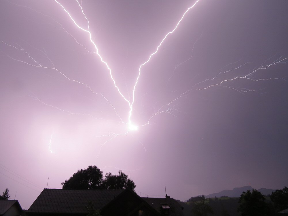 Die weiterziehenden Gewitter in Richtung Kempten/Österreich boten eine niederschlagsfreie Rückseiten-Zone: