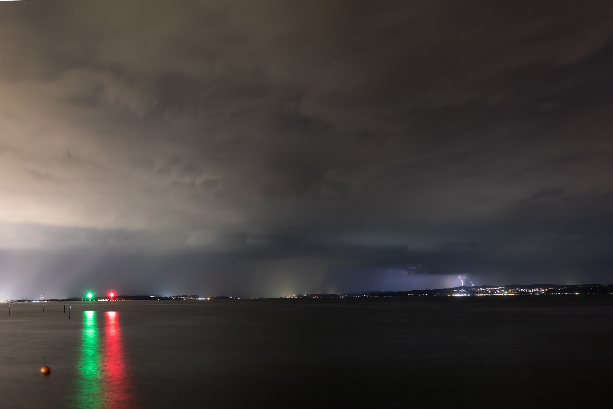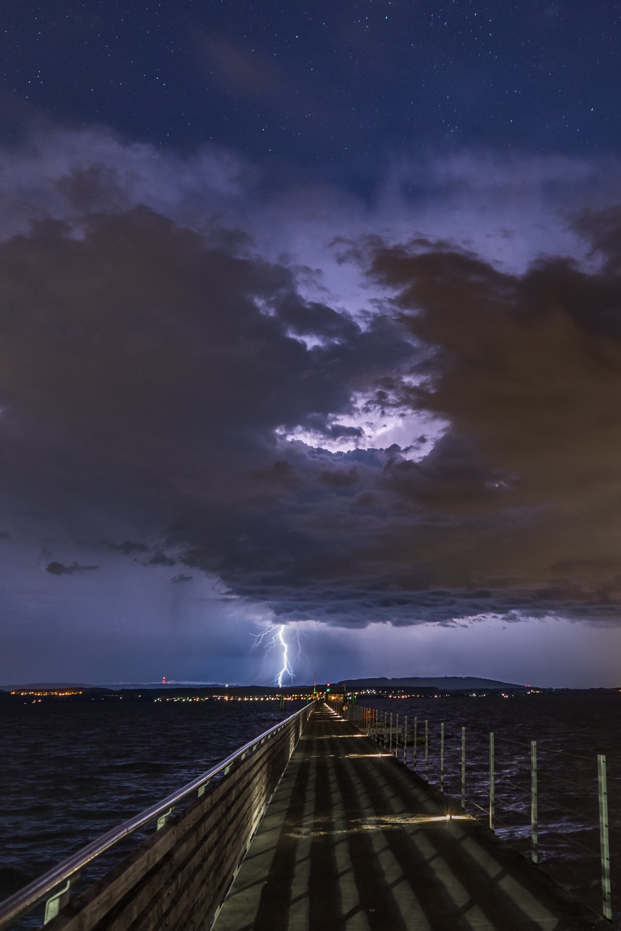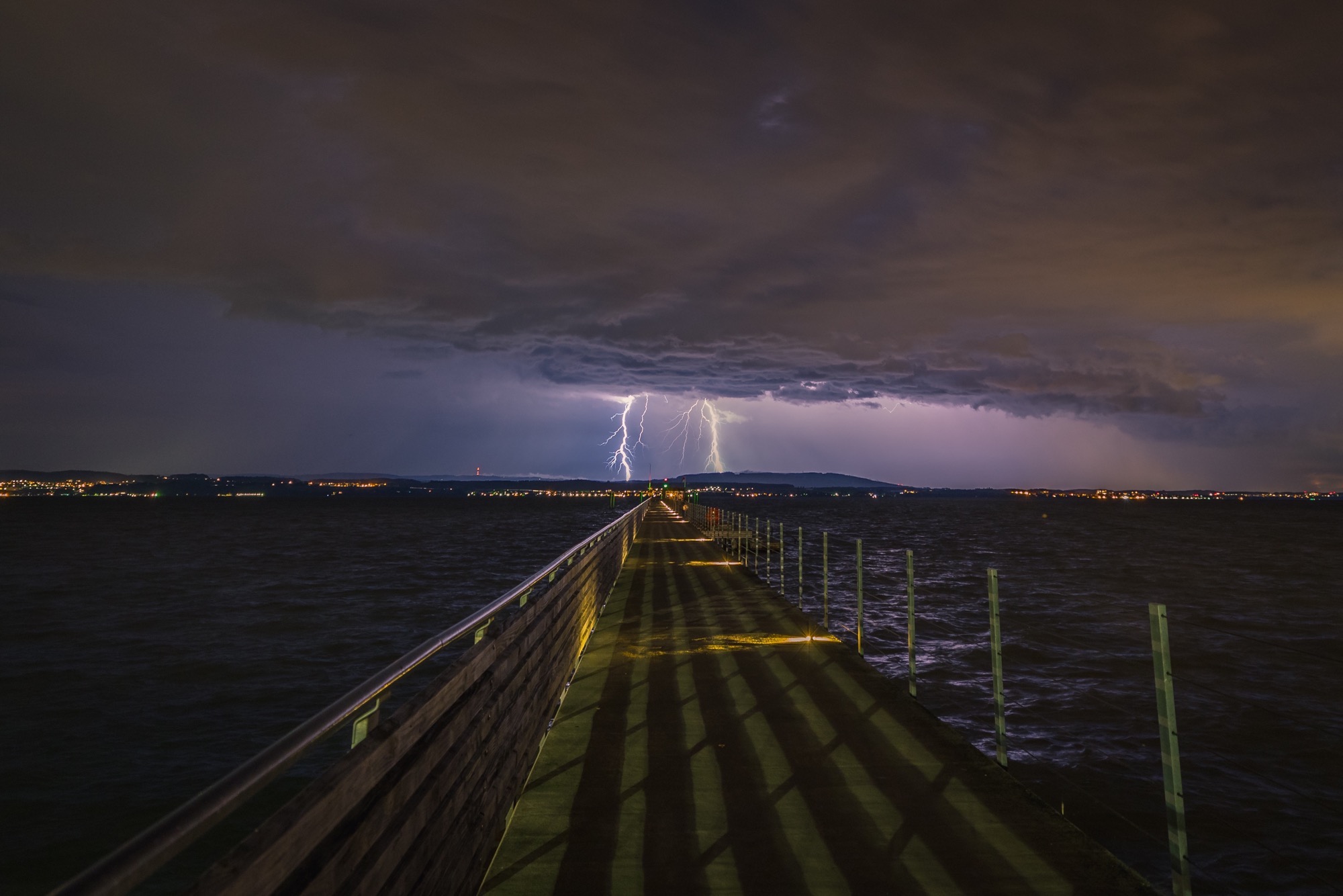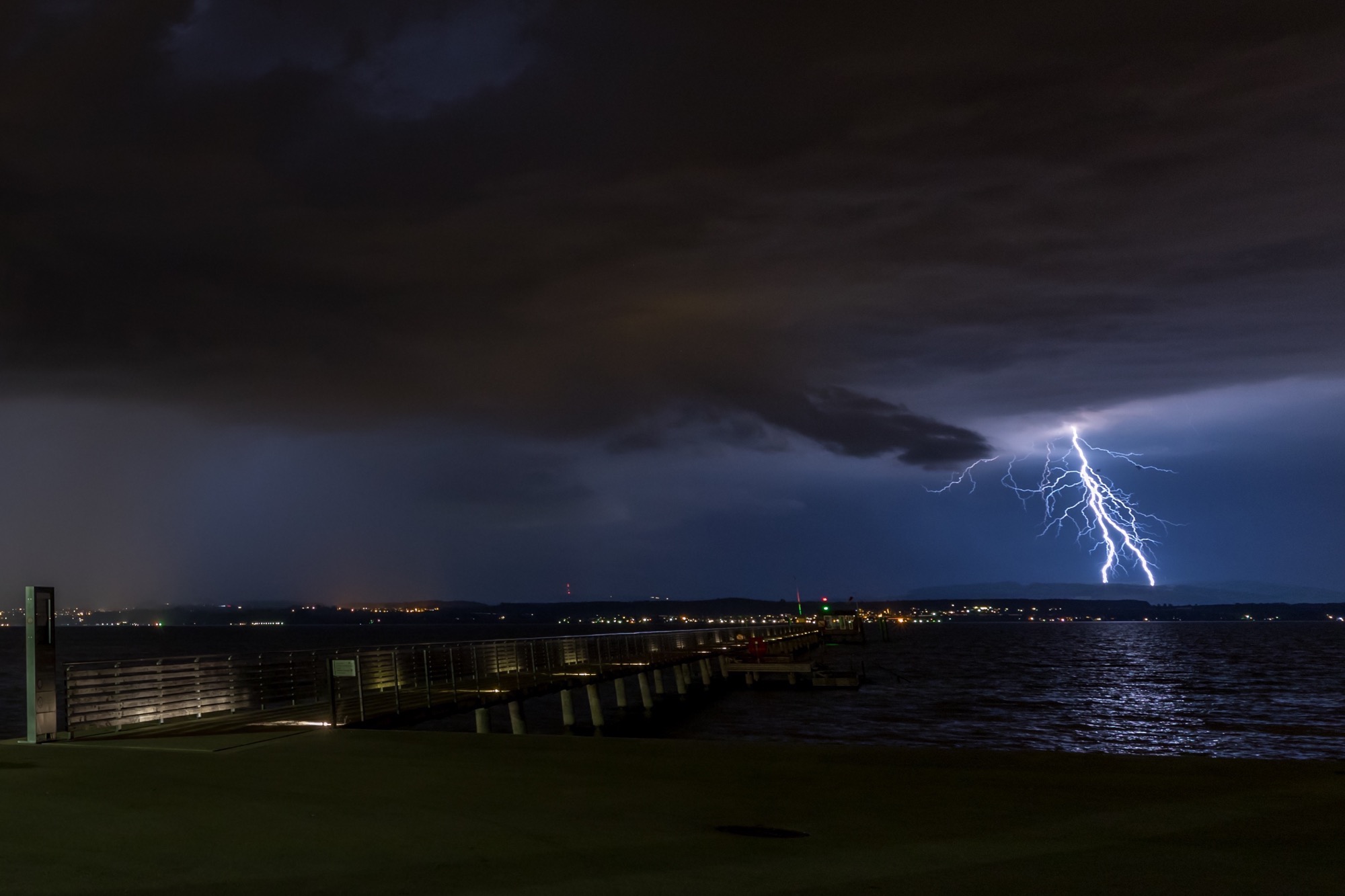 In Altnau am See gibt es einen wunderbaren Steg der bis weit in den See hinausführt und wenn das Gewitter anrollt einen grossen Unterstand mit 180 Grad Blickrichtung über den See.