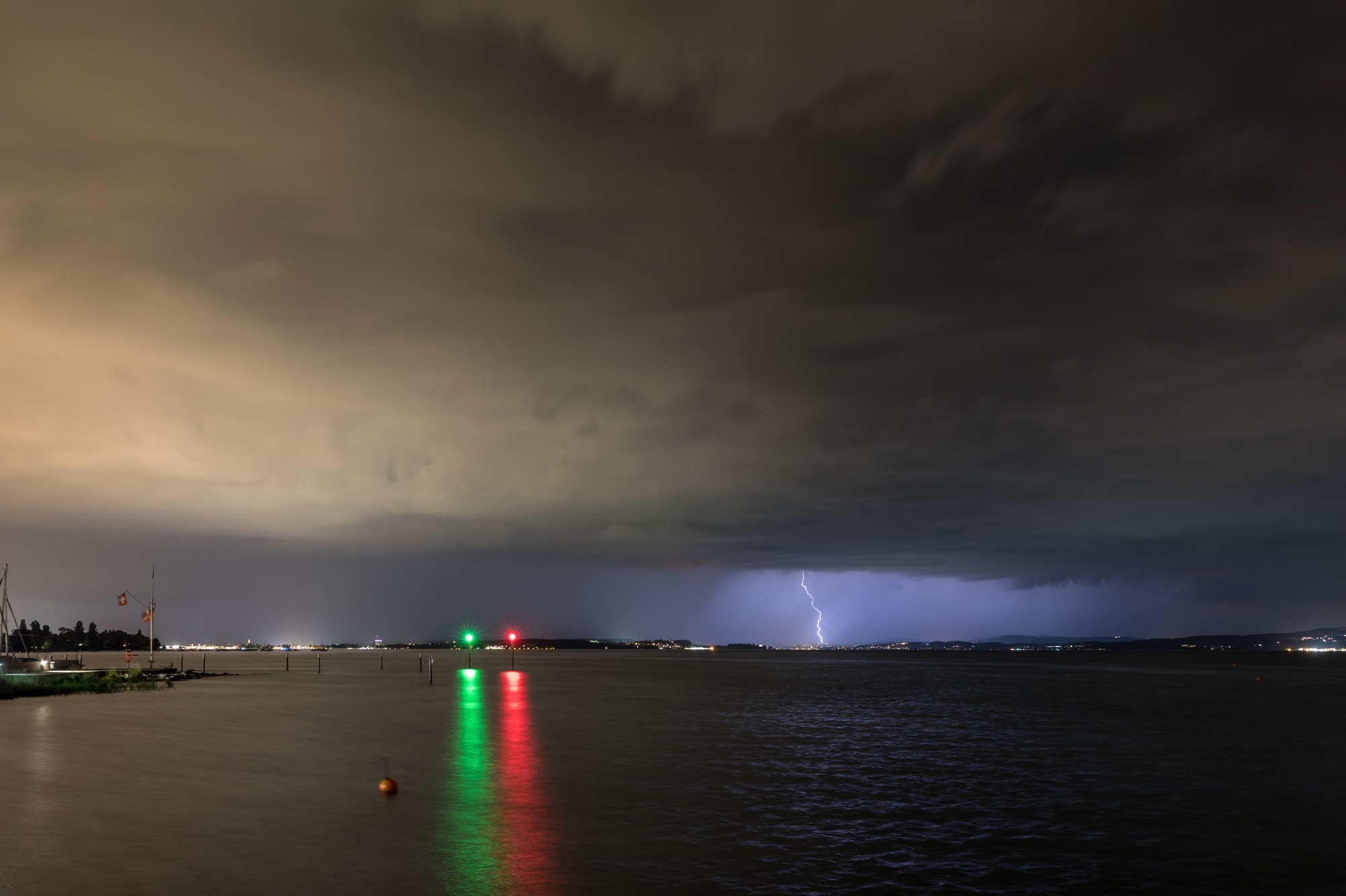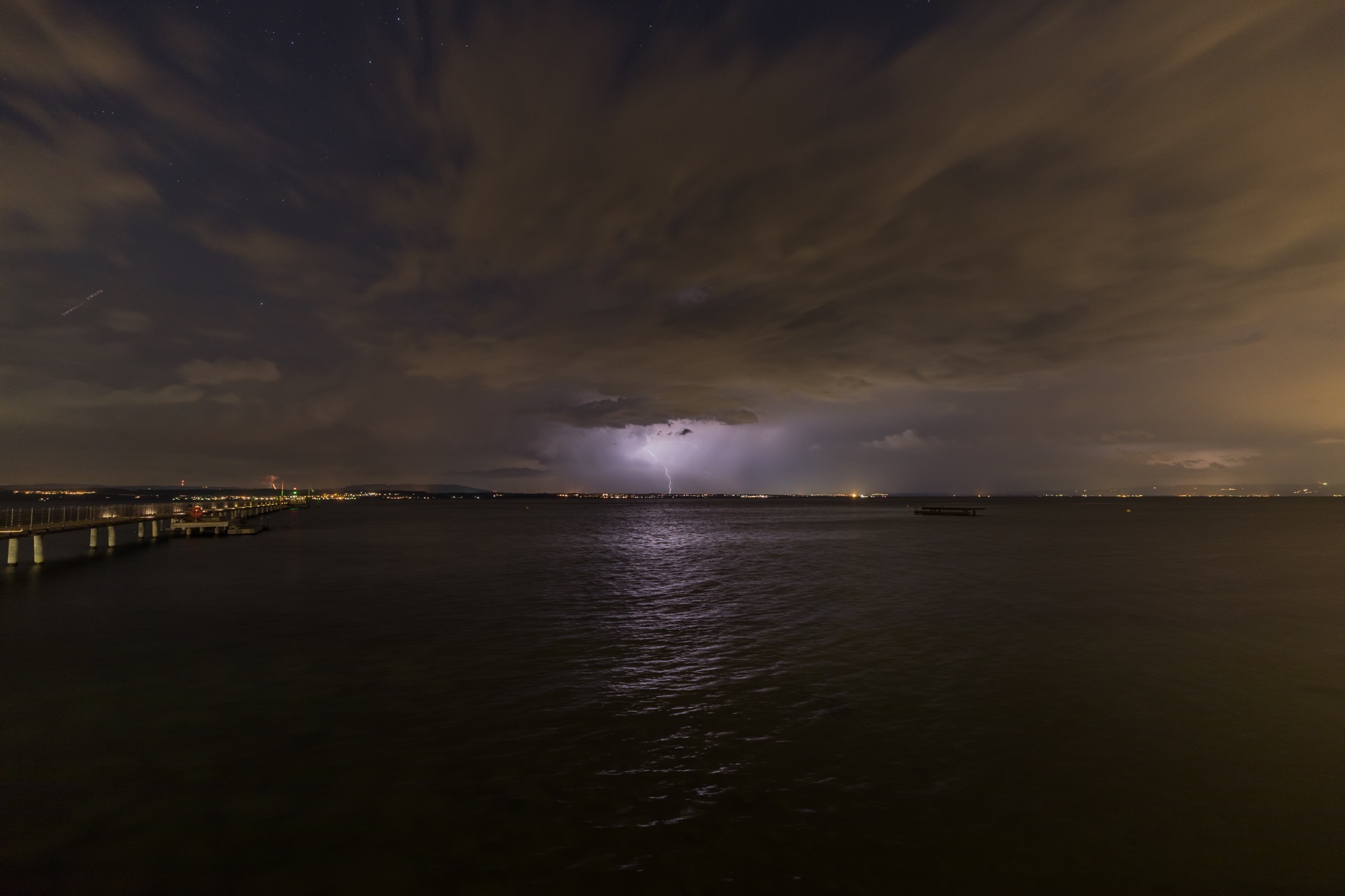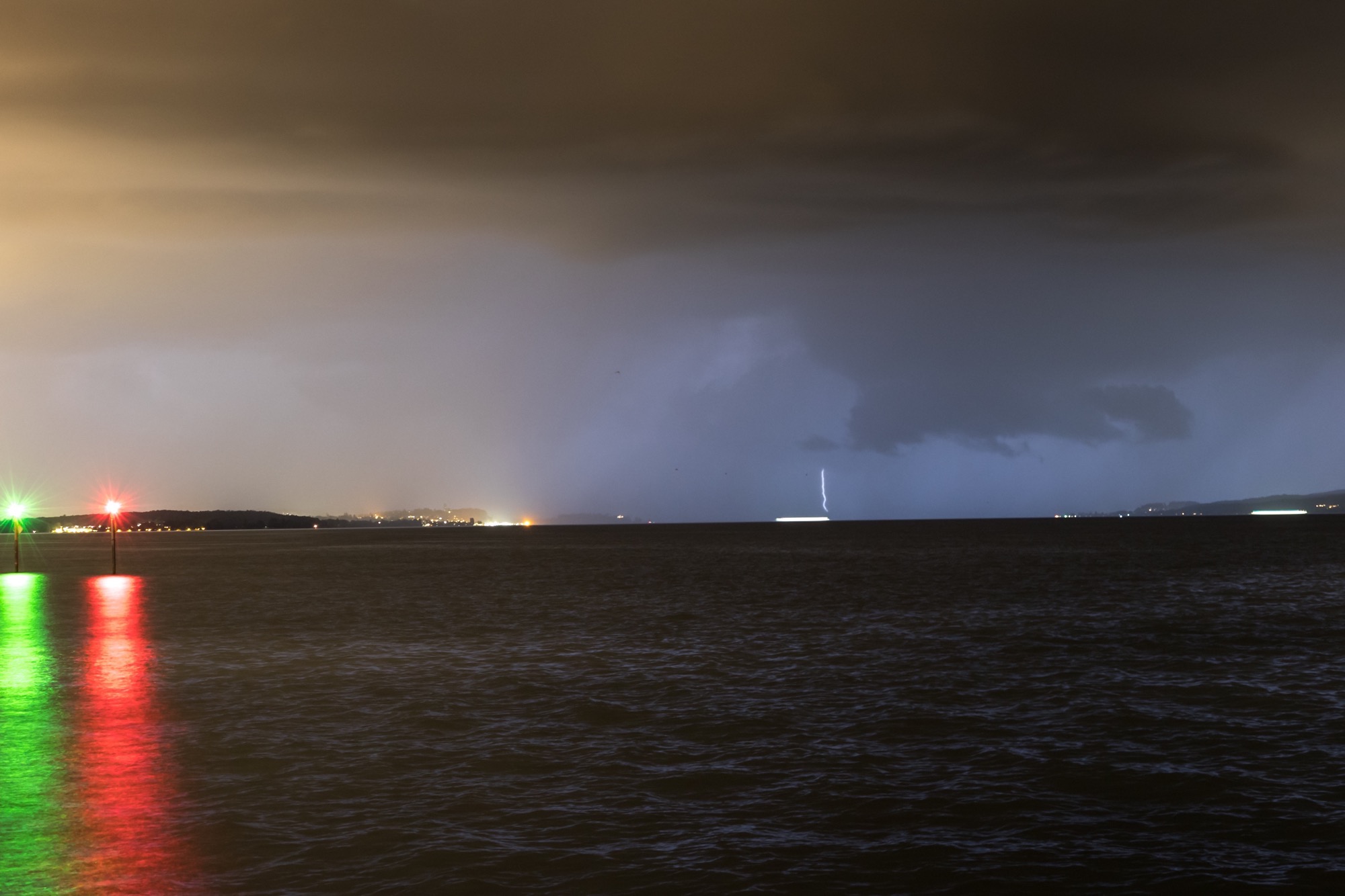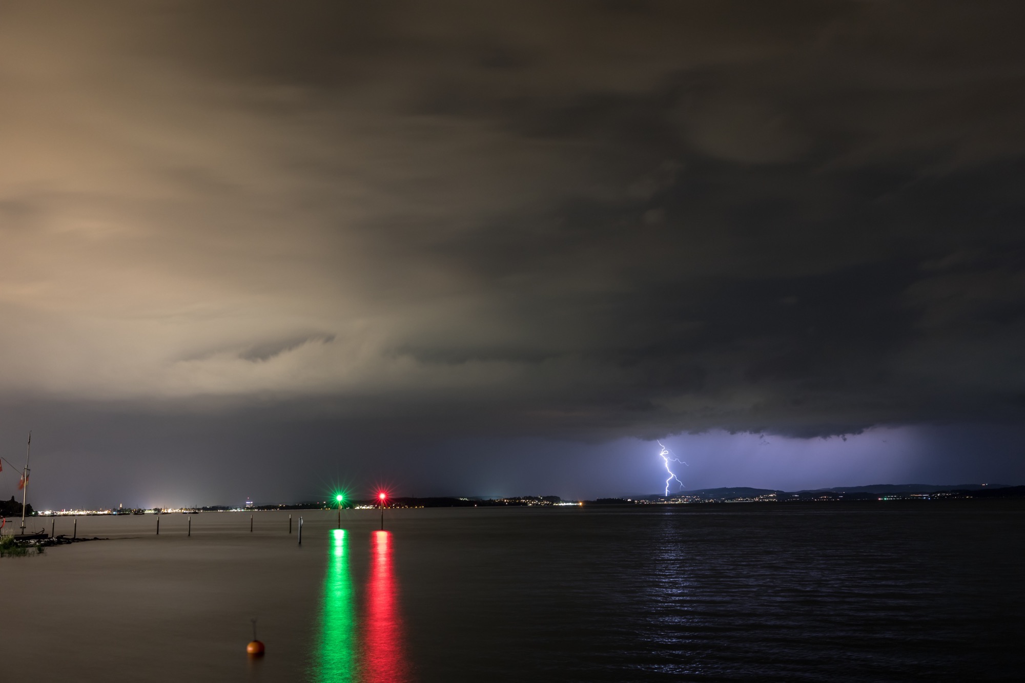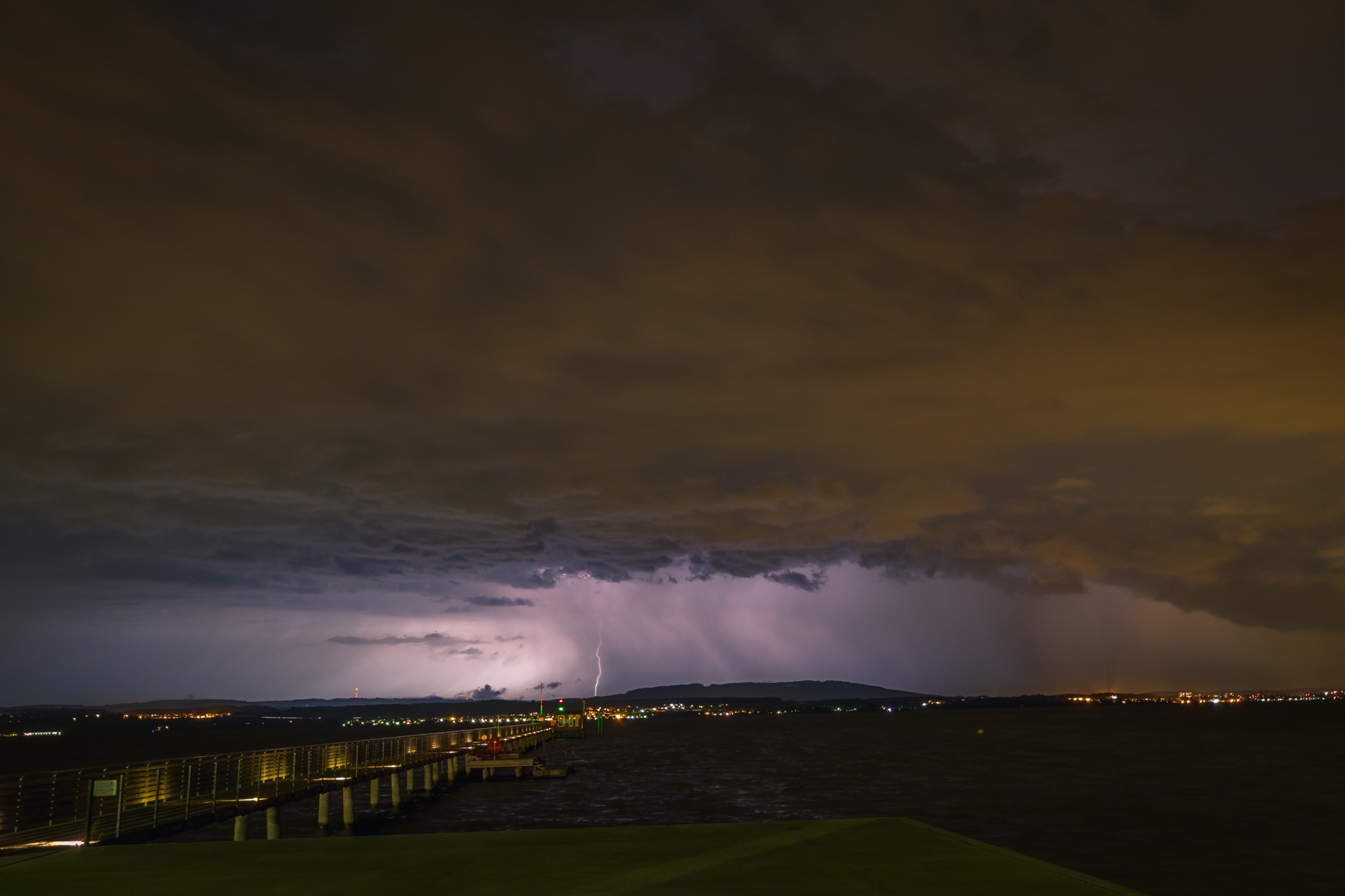 In Altnau am See gibt es einen wunderbaren Steg der bis weit in den See hinausführt und wenn das Gewitter anrollt einen grossen Unterstand mit 180 Grad Blickrichtung über den See.