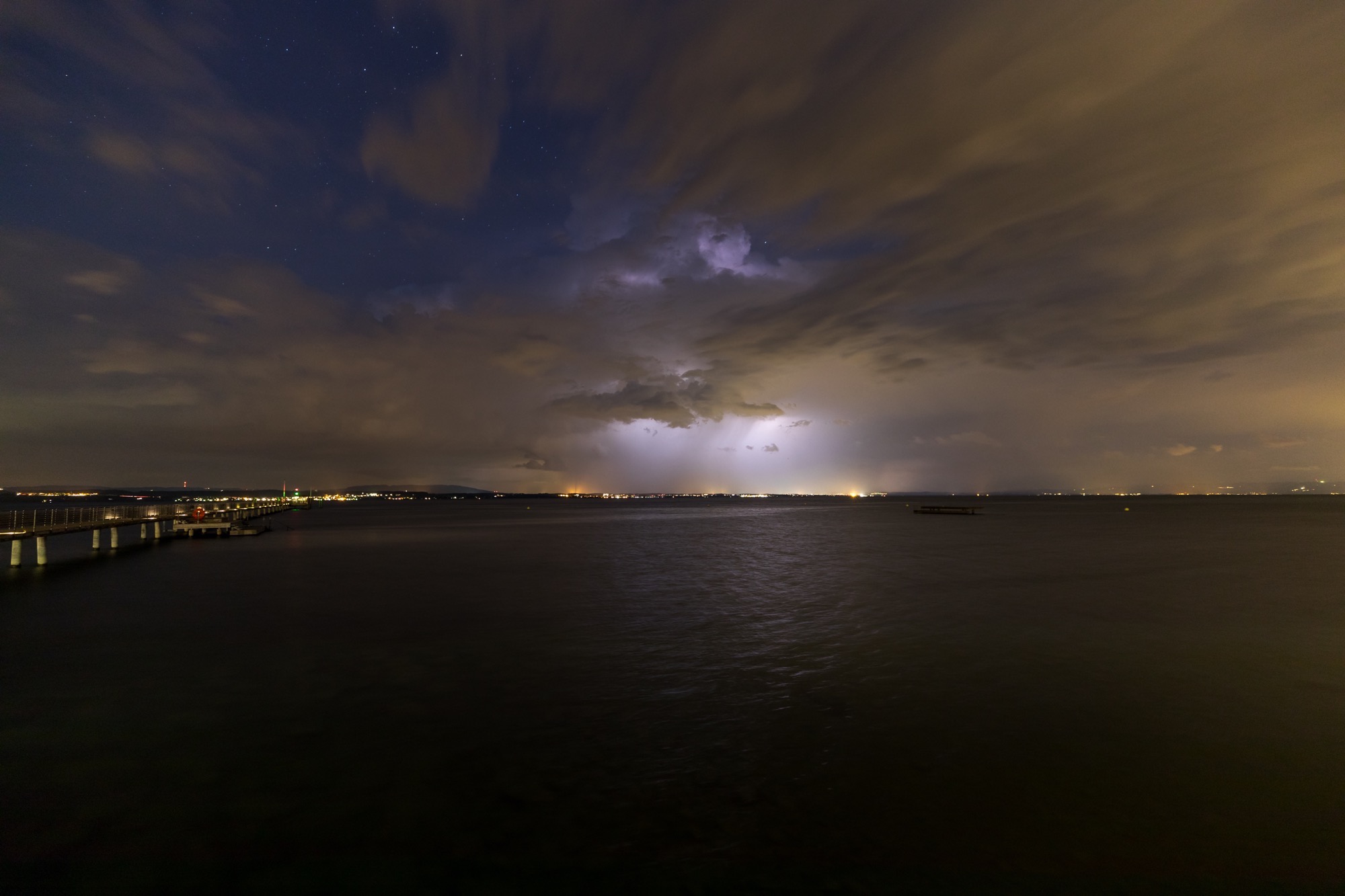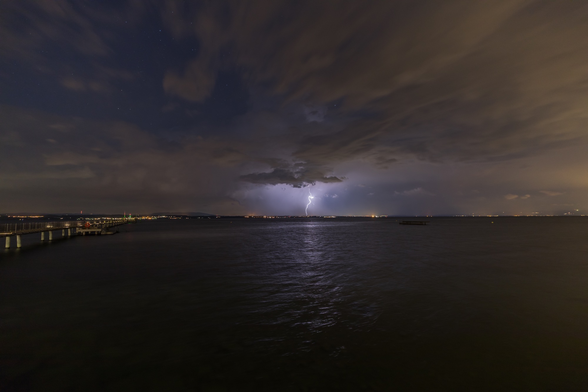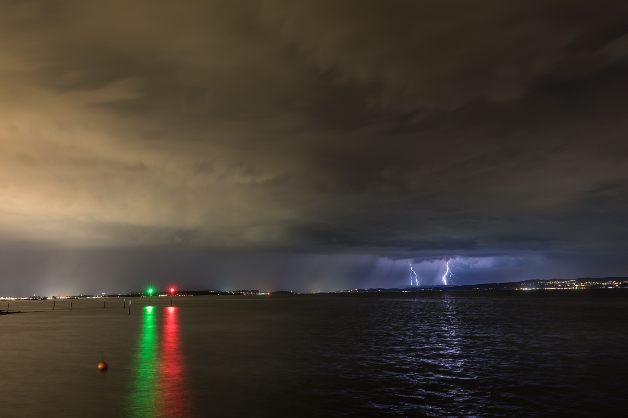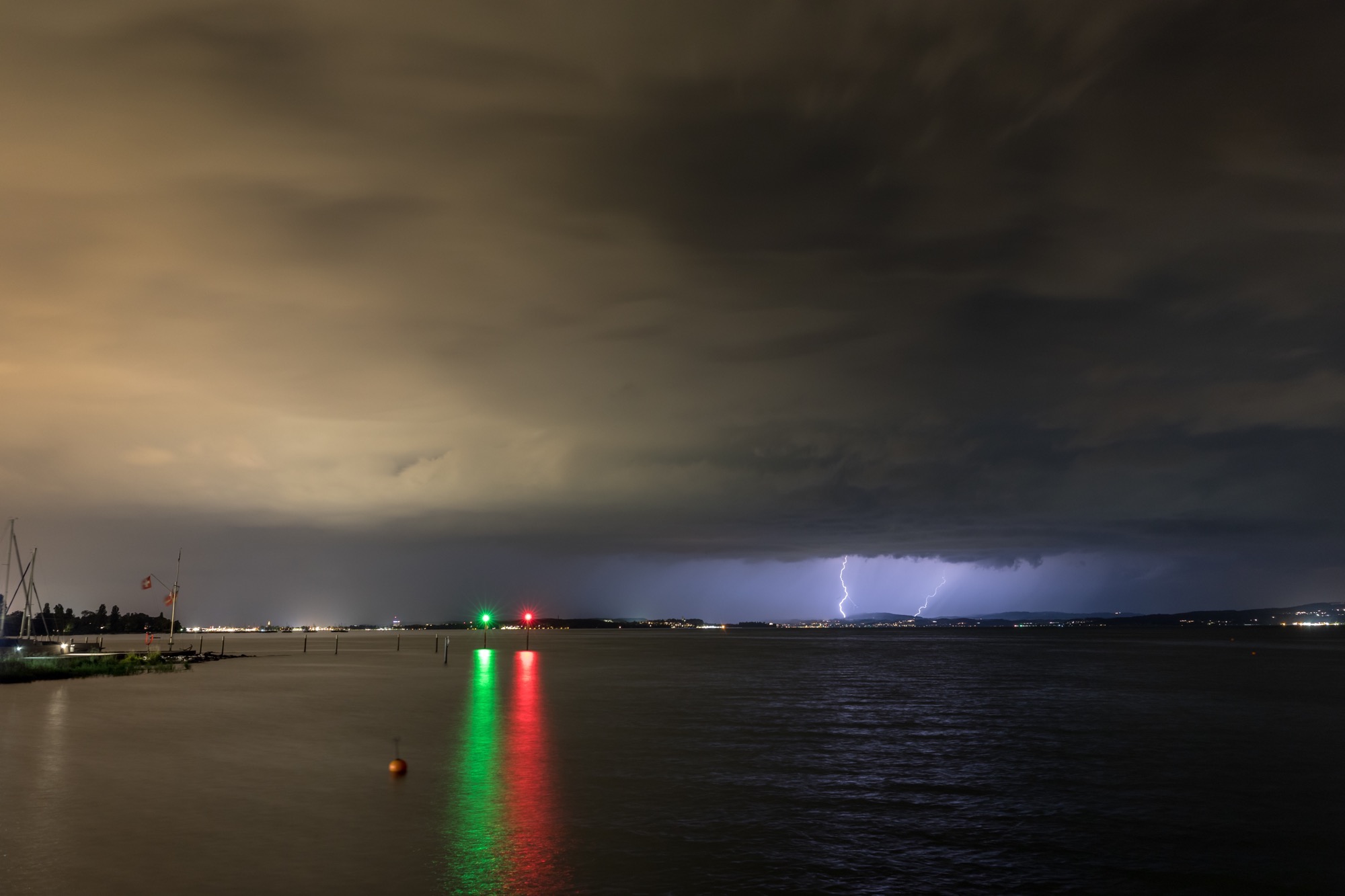 In Altnau am See gibt es einen wunderbaren Steg der bis weit in den See hinausführt und wenn das Gewitter anrollt einen grossen Unterstand mit 180 Grad Blickrichtung über den See.