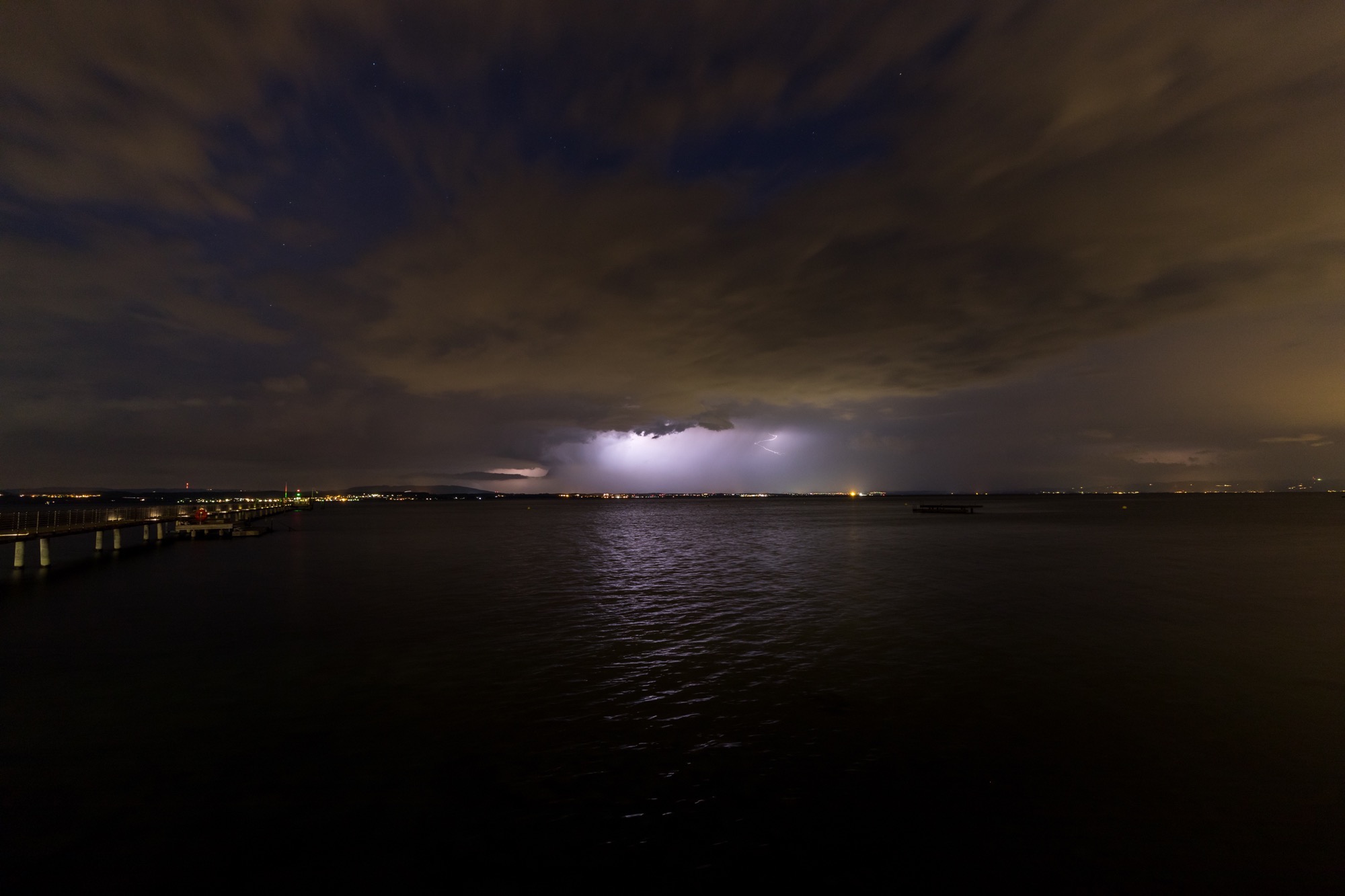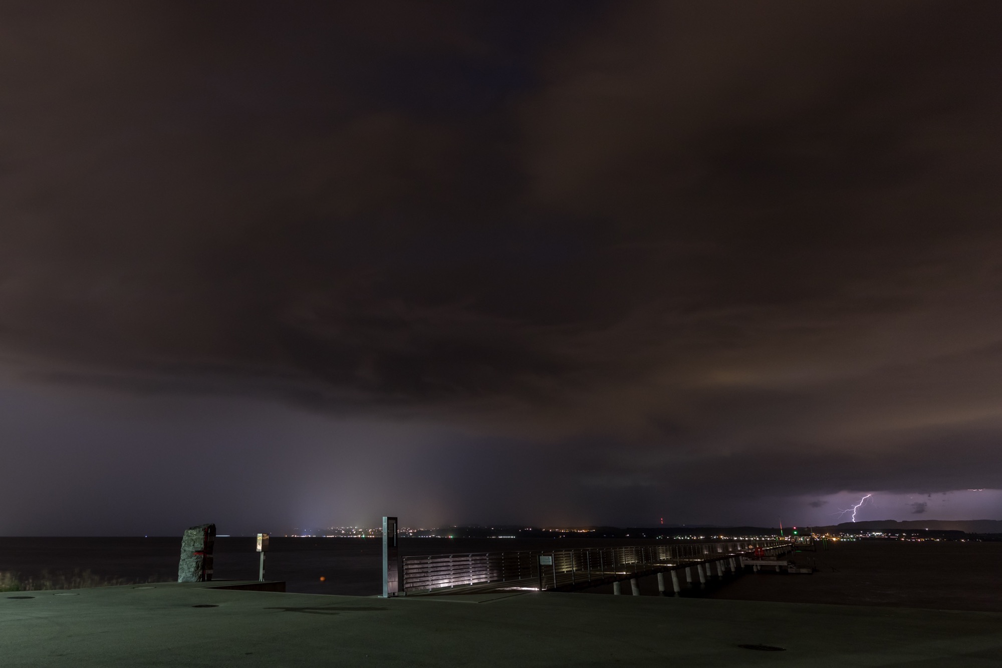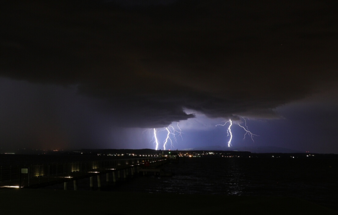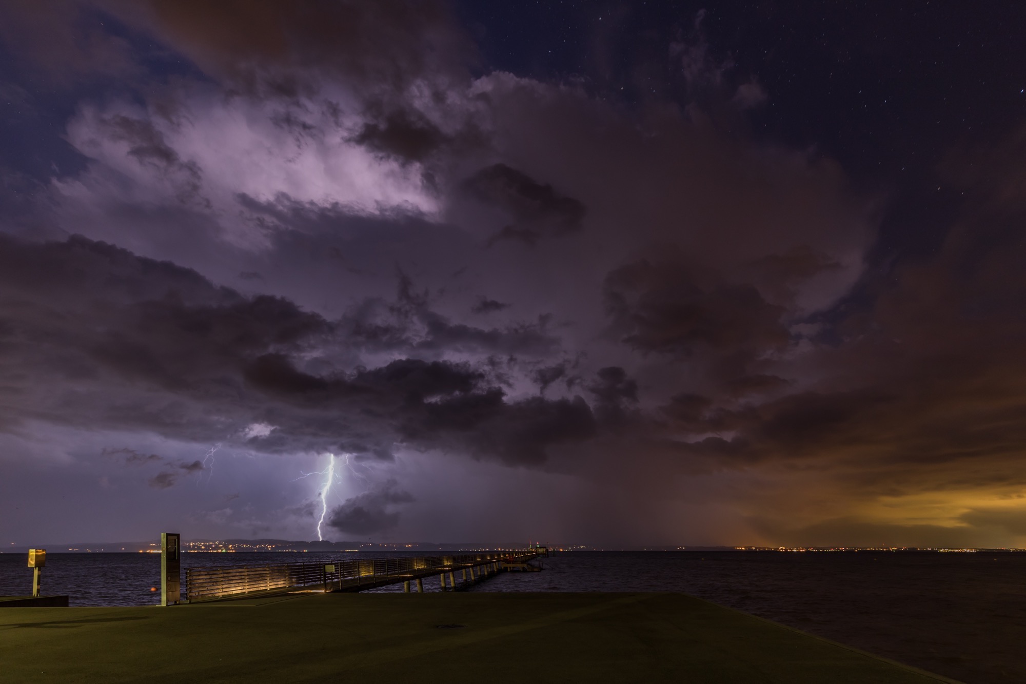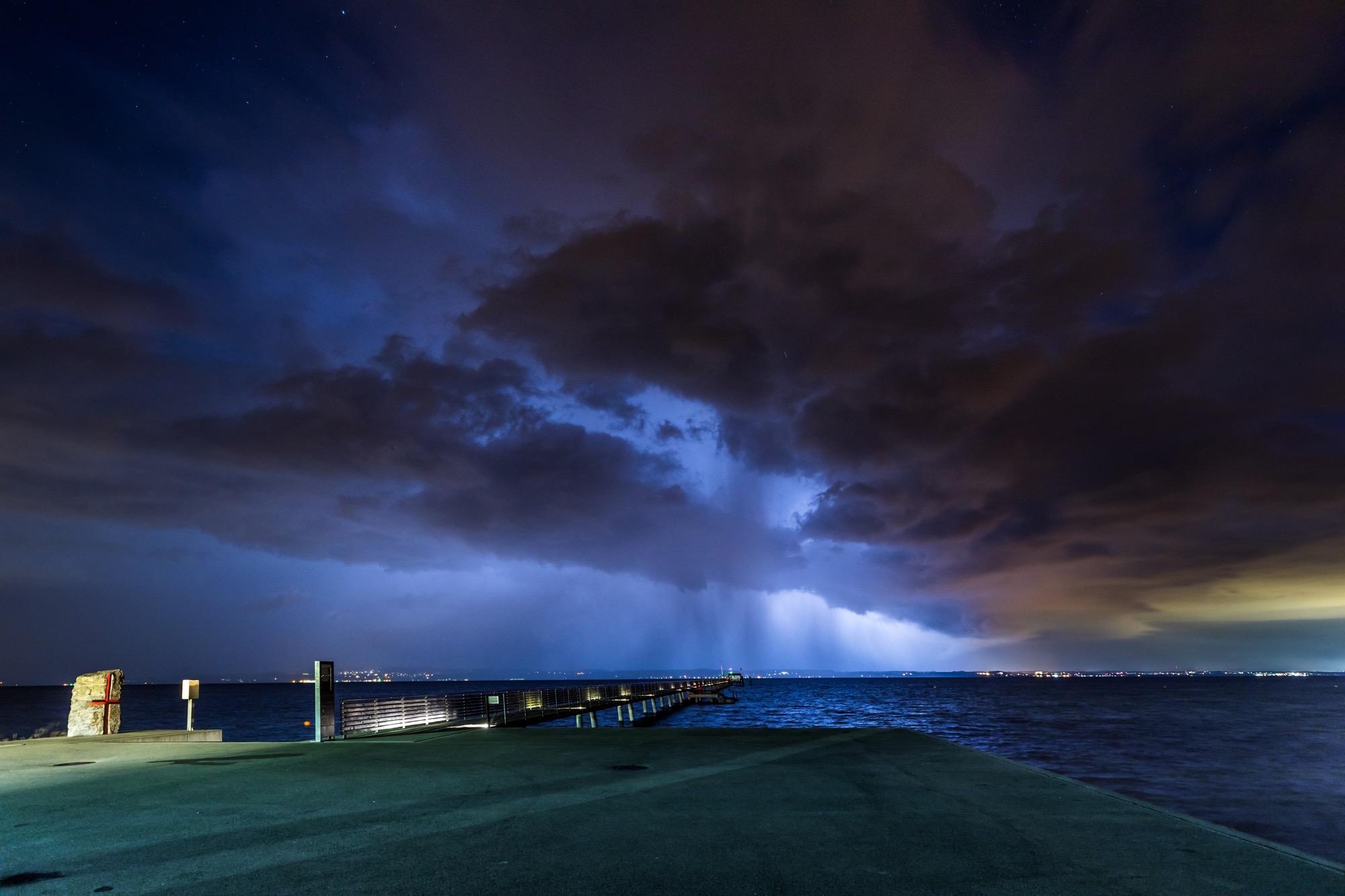 In Altnau am See gibt es einen wunderbaren Steg der bis weit in den See hinausführt und wenn das Gewitter anrollt einen grossen Unterstand mit 180 Grad Blickrichtung über den See.