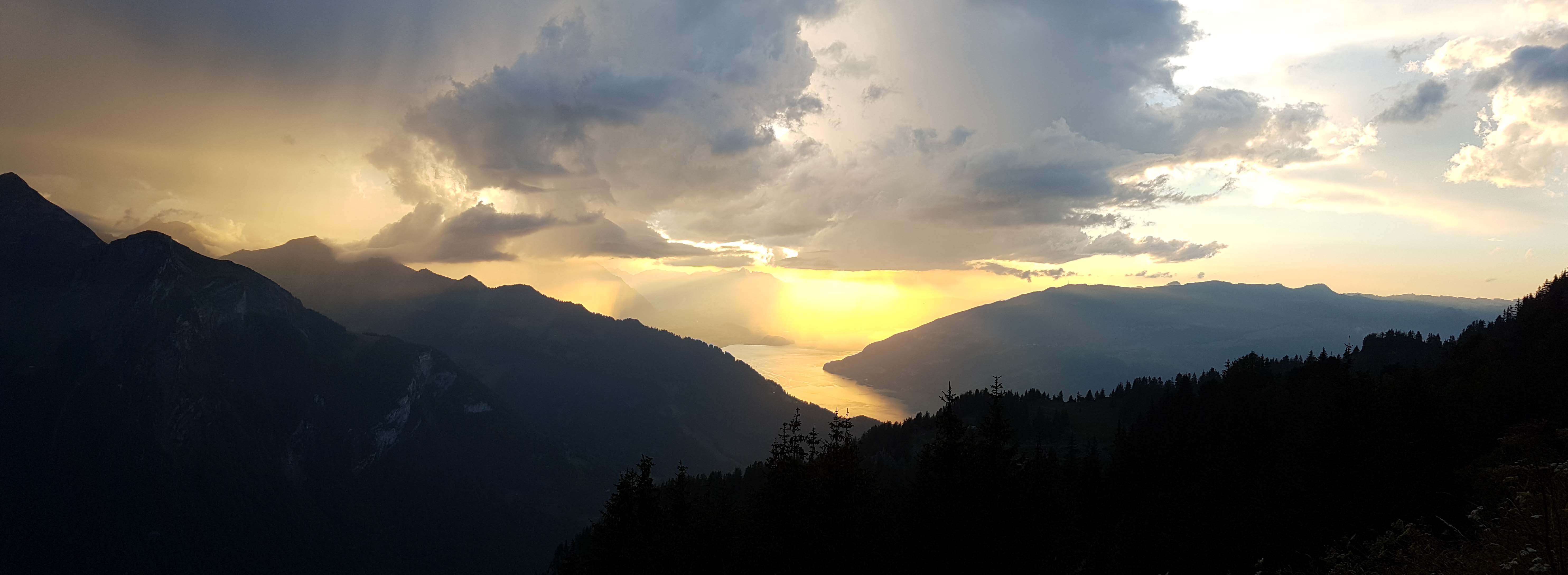 Das kleine Gewitter das über den Thunersee zog war als Wetterereignis absolut unbedeutend, zusammen mit der untergehenden Sonne bot es aber eine optische Show die ganz grosses Kino war! Beobachtet und genossen von der Schynigen Platte aus.