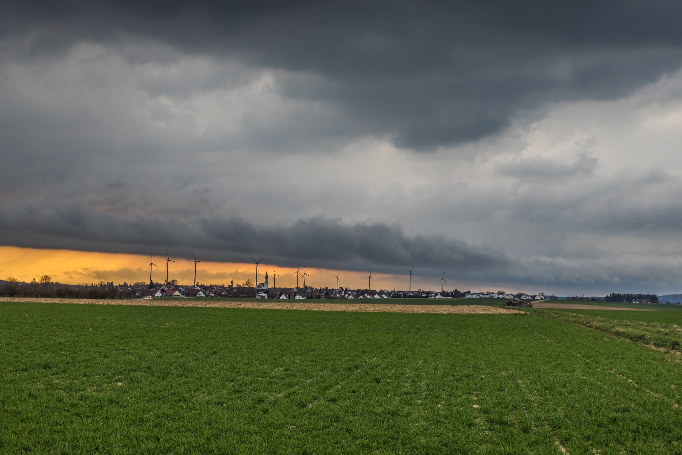 Ich fuhr dann östlich von Ulm ab und stellte mich auf eine Anhöhe direkt nördlich der Autobahn. Ein schönes Farbenspiel bot sich mir mit dem Sonnenuntergang, als sich plötzlich eine Superzelle bildete, die sich zwar schnell verclusterte, aber richtig Fahrt aufnahm.