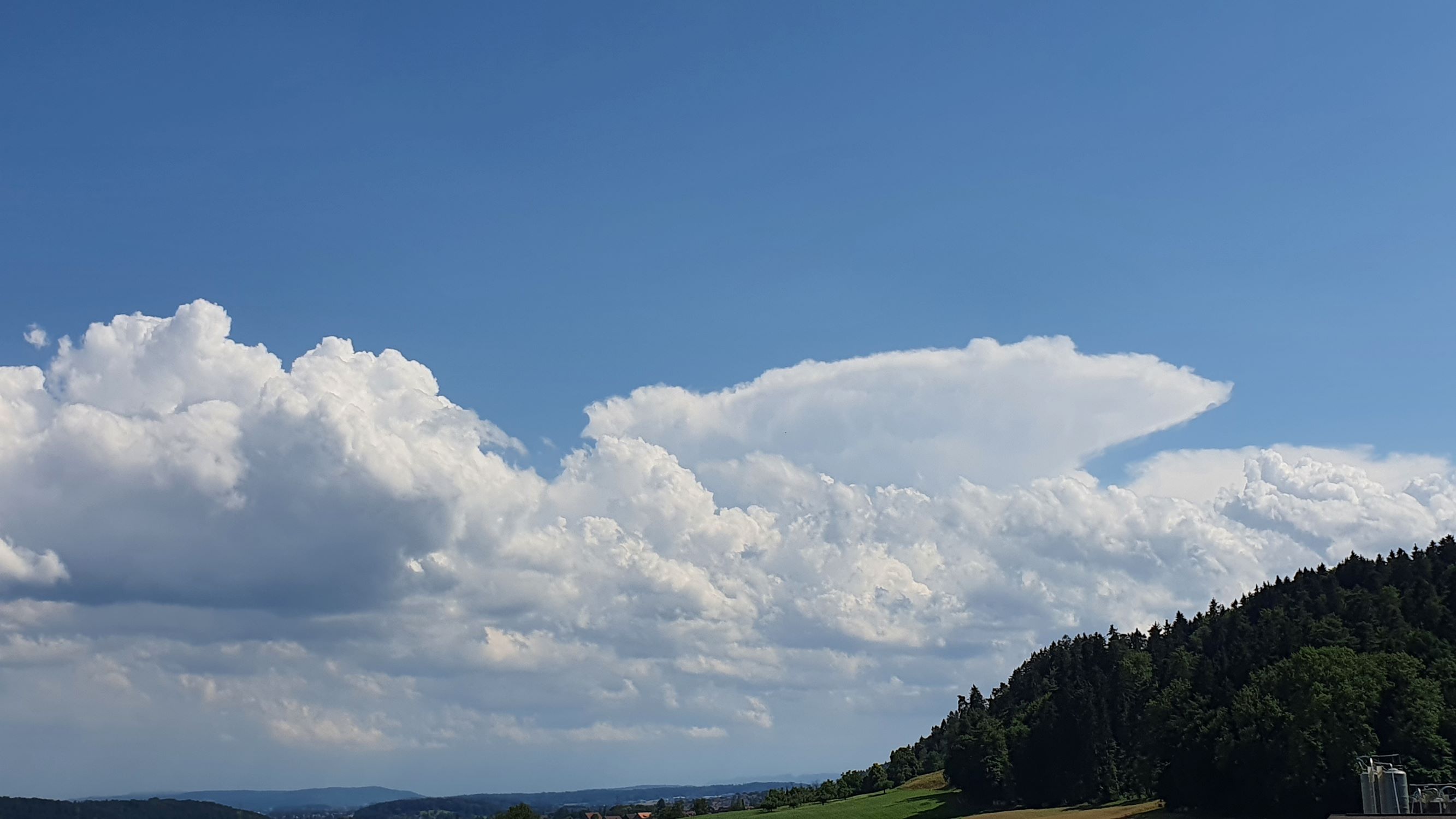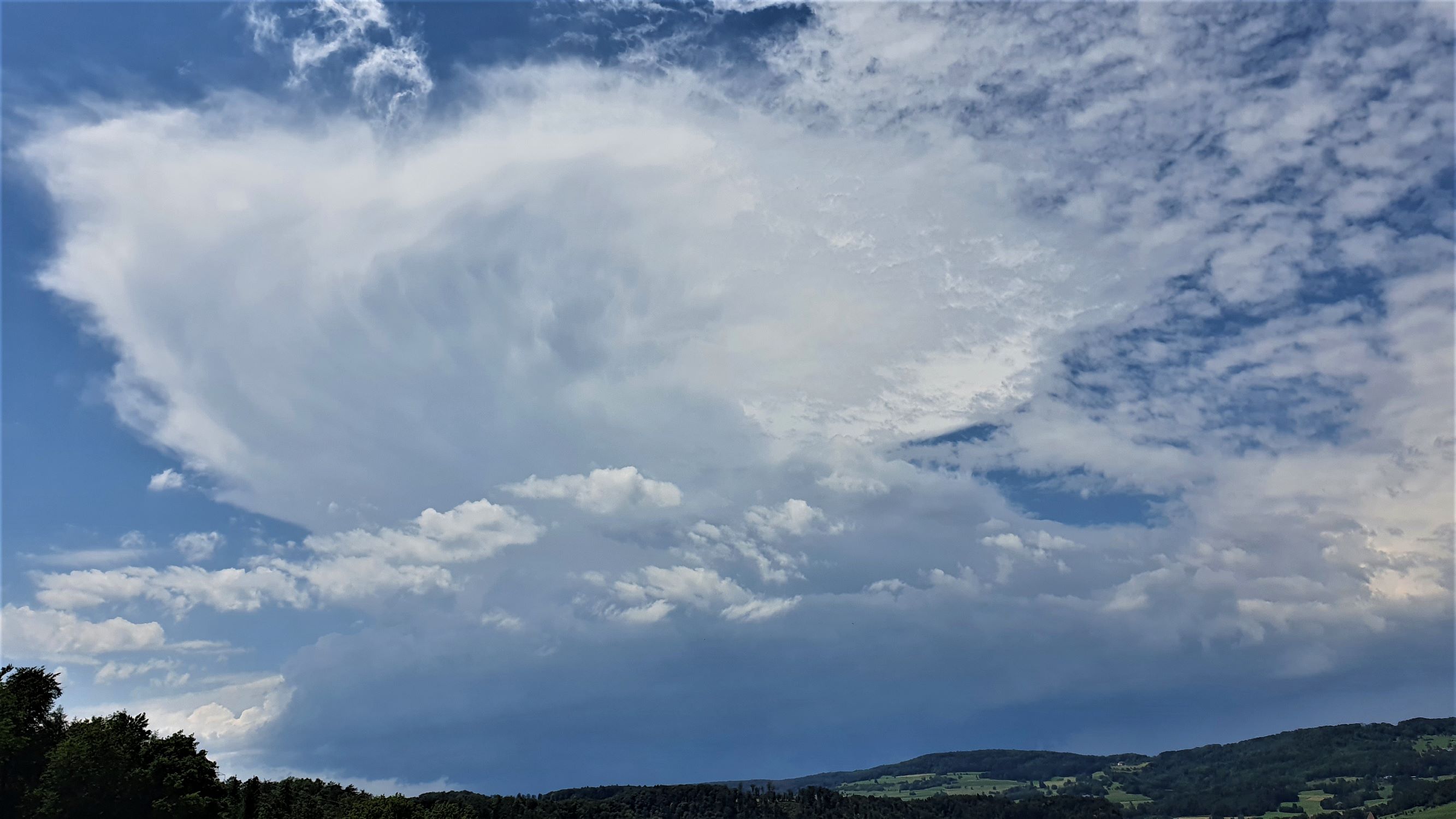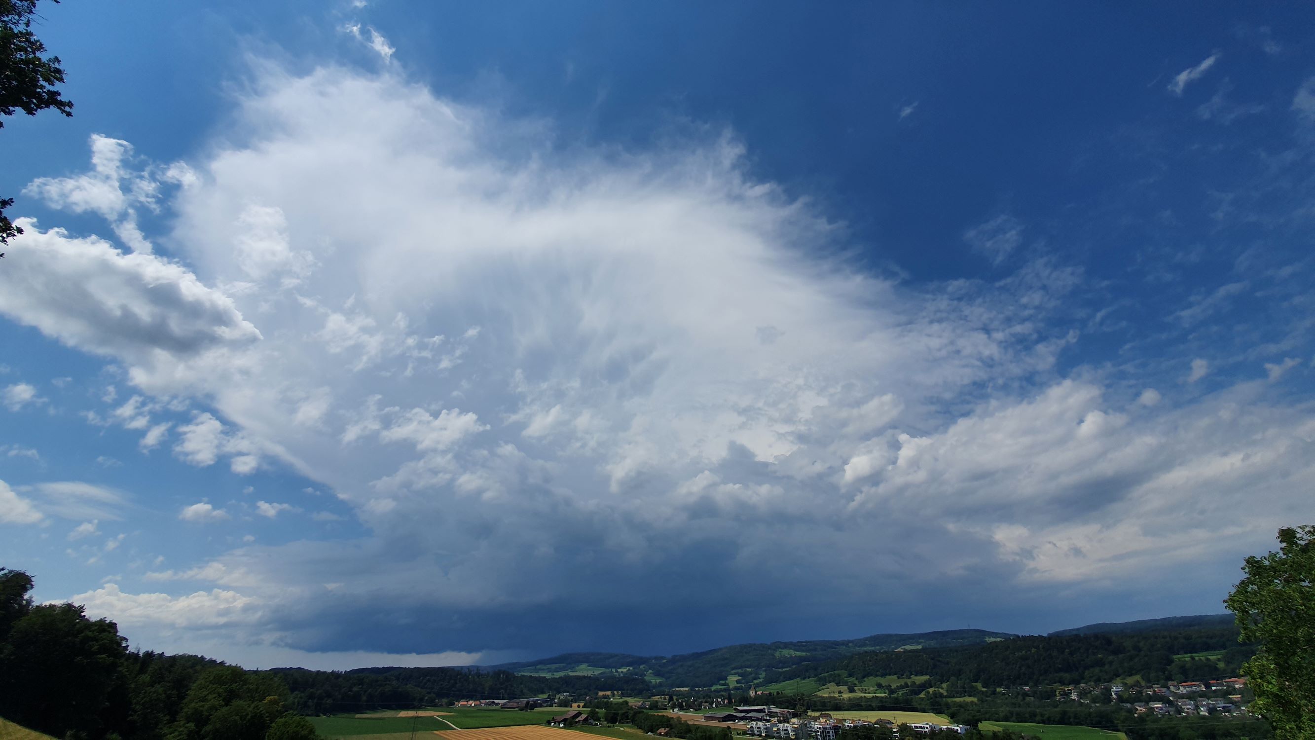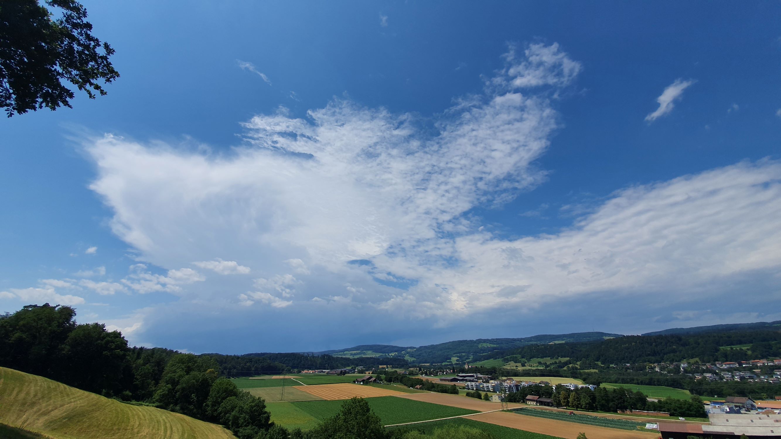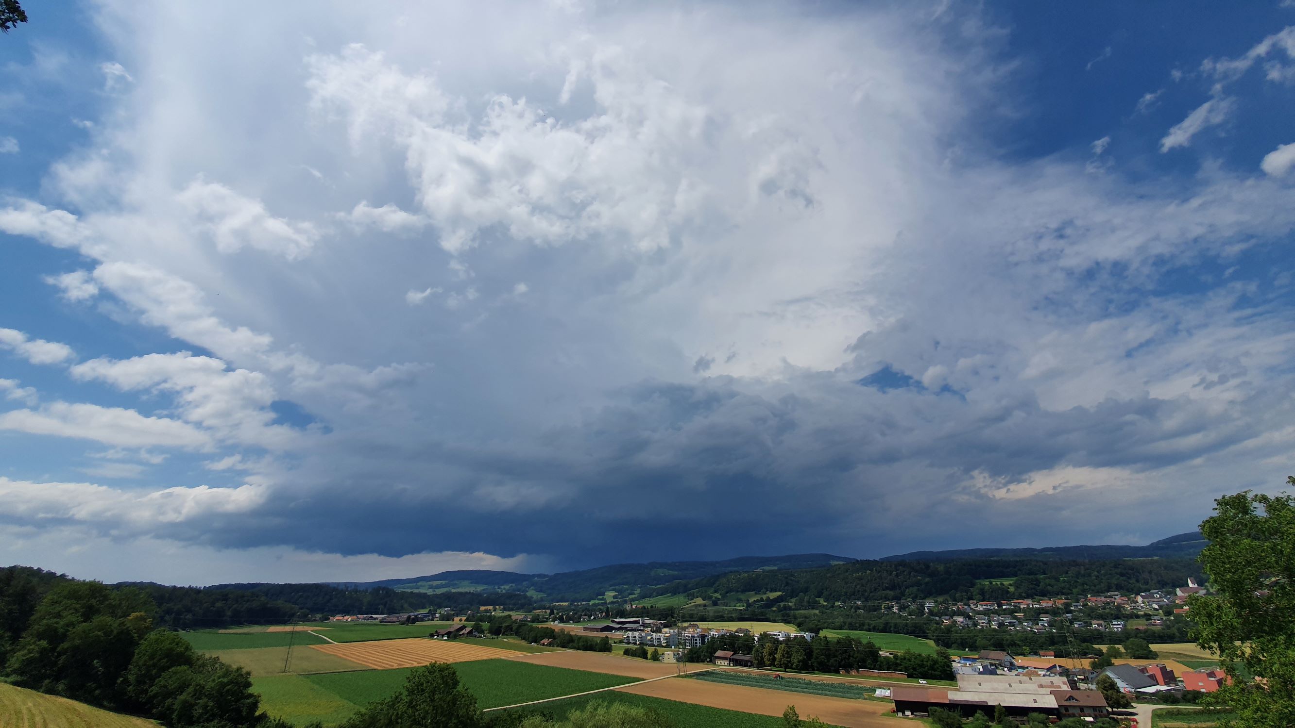 Am sonnigen 27. Juni zeigte sich eine kleine Zelle auf dem Radar über Basel, Zugrichtung: an mir vorbei :-) und zu weit weg für ein paar Blitzfotos, nah genug für hörbares Donnergrollen.