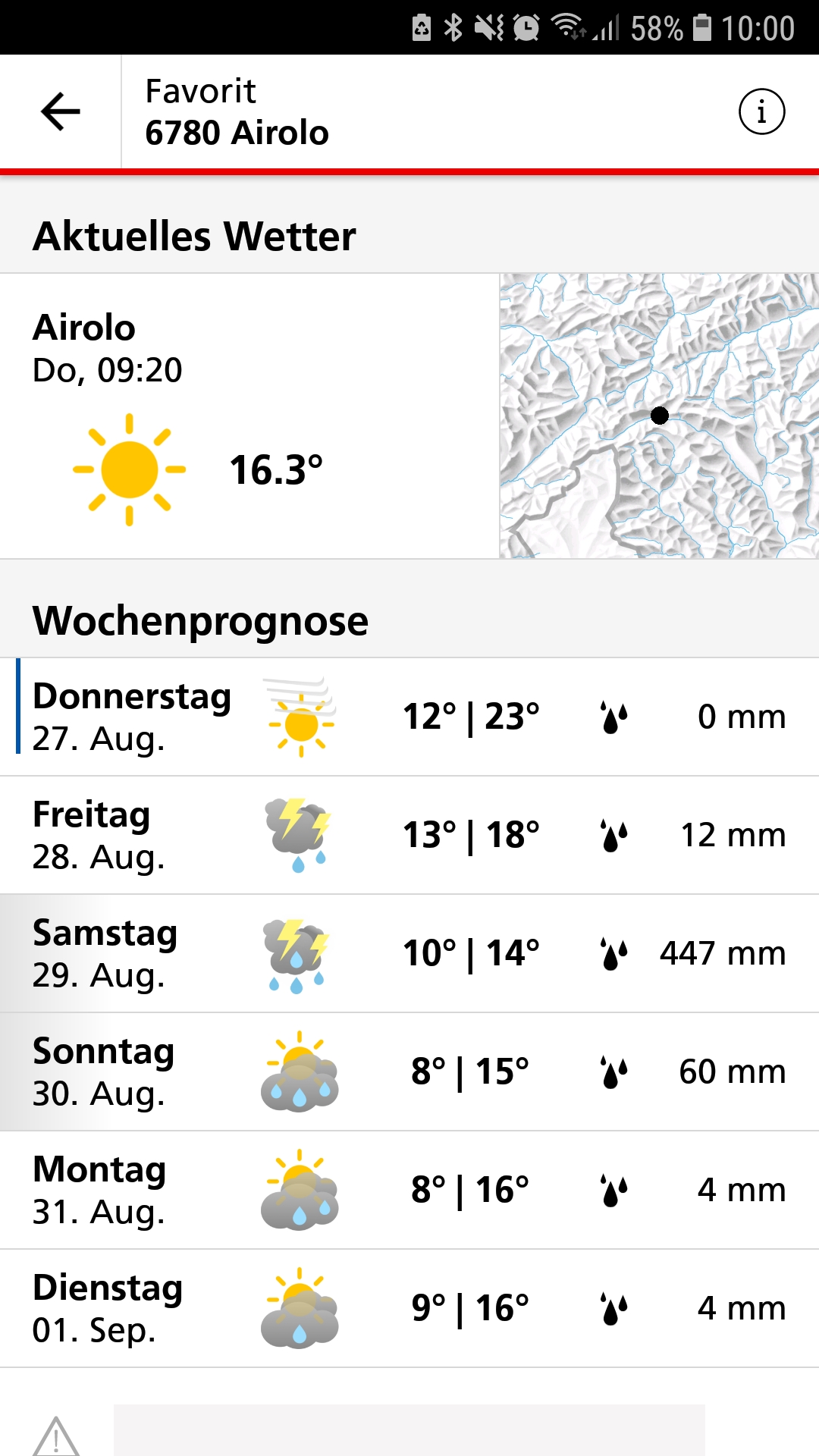 Jetzt im 11:30 kräftiges Gewitter mit sehr viel Regen. Mir fällt auf, dass es nicht stark abkühlt. Um 12 Uhr meldete Locarno Magadino 50mm in einer Stunde.