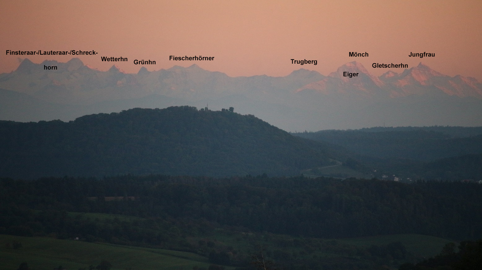 Da kann man für jeden beliebigen Standpunkt (auch aus dem benachbarten Ausland) Panoramen erstellen lassen. Leider lassen sich keine Beschriftungen einblenden, man kann die Namen der einzelnen Berge nur anzeigen lassen, indem man mit der Maus drüberfährt, daher ist es wenig sinnvoll, wenn ich einen Screenshot erstelle. Drum habe ich mir erlaubt, die Namen direkt in dein Bild reinzumontieren: