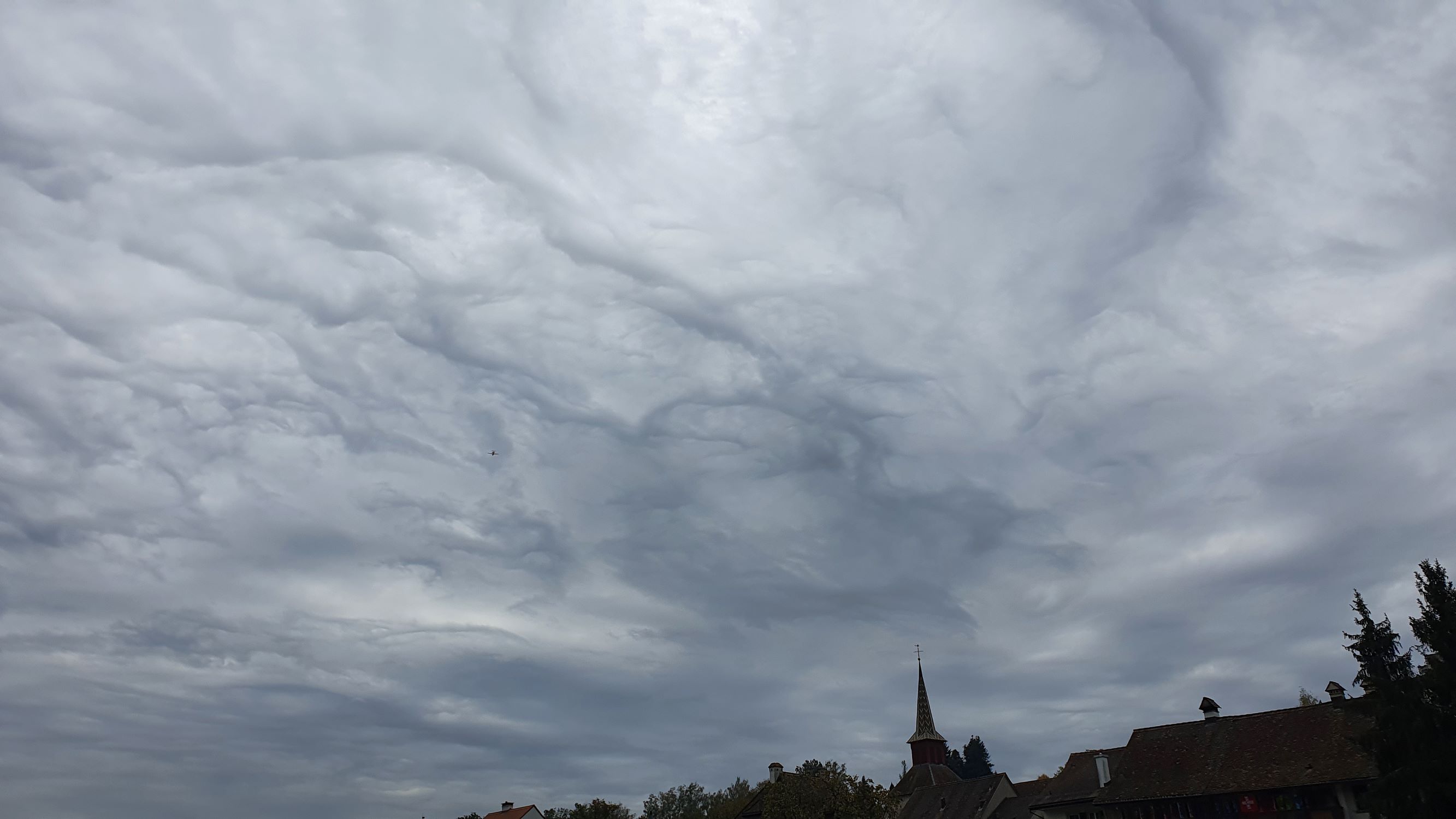 Ein Himmel von fantastischer Wellen, Asperatus undulatus über eine Stunde lang und über den ganzen Himmel verteilt. Ist da auch der Föhn der Auslöser?