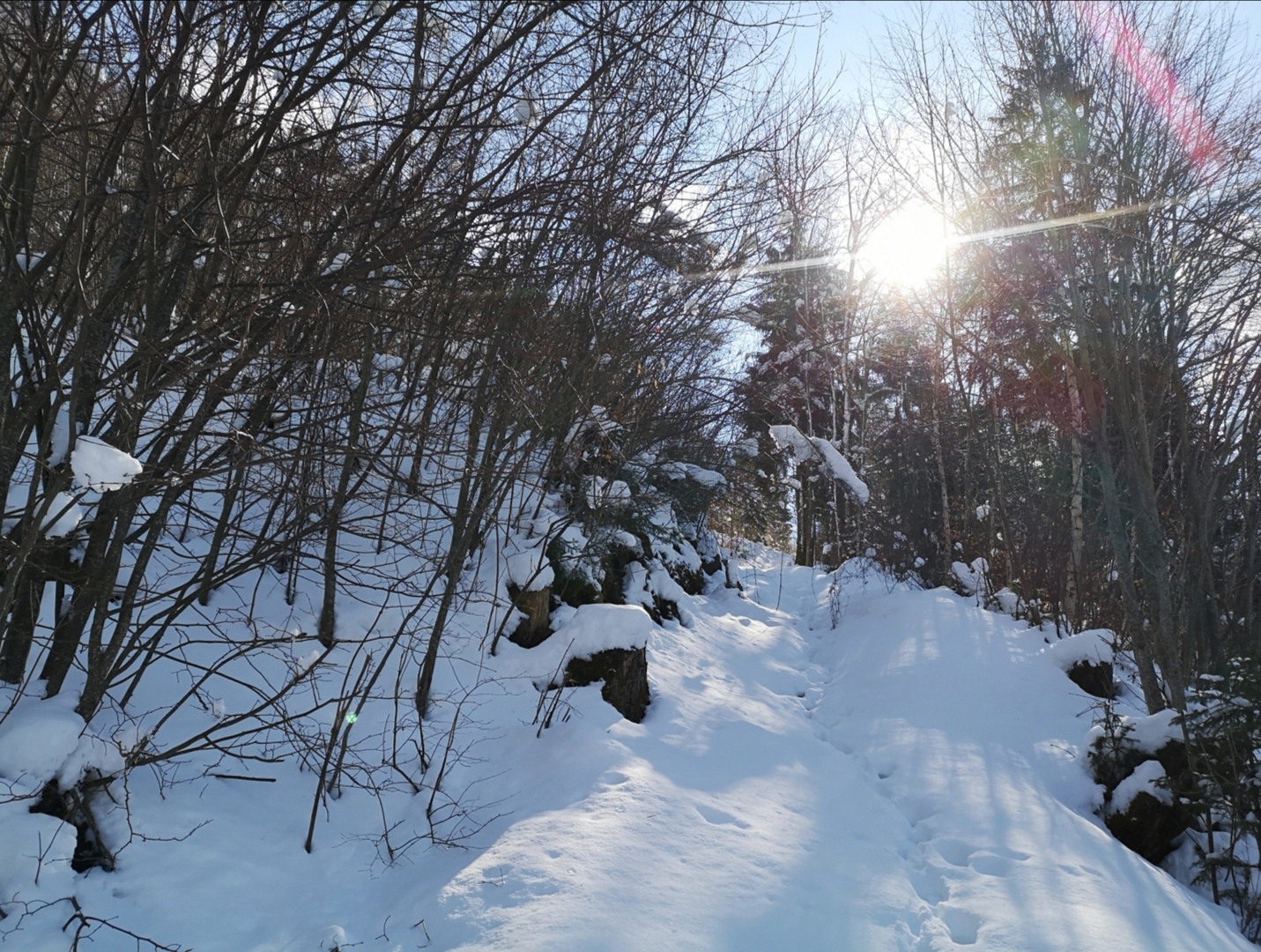 Zu dem Zeitpunkt war ich froh, die geräumten Strasse zu kreuzen. Mangels Schneeschuhe oder Tourenausrüstung (oder besserer Kondition