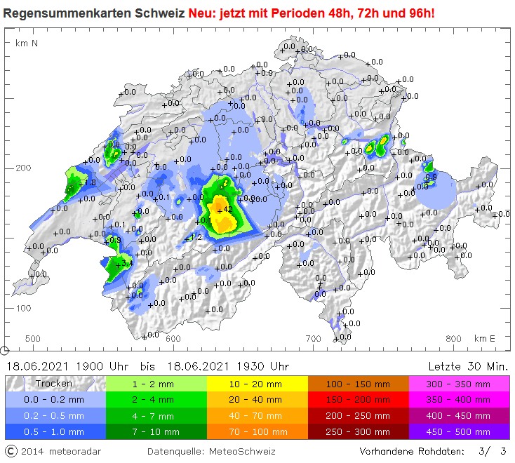 Ich sitze ziemlich mittig in der Zelle über dem Mürtschenstock. Temperatursturz von 28.8C (17:14 über 21.3 (20:49) auf 13.4C (21.30). 35.5mm Regen innert 40 Minuten. Ziemlich viel Licht rundherum......dxbruelhart hat geschrieben: ↑Fr 18. Jun 2021, 21:06 Richtig gewittrig im Glarnerland aktuell. Einschläge in den Bergen; relativ tüchtiger Wind