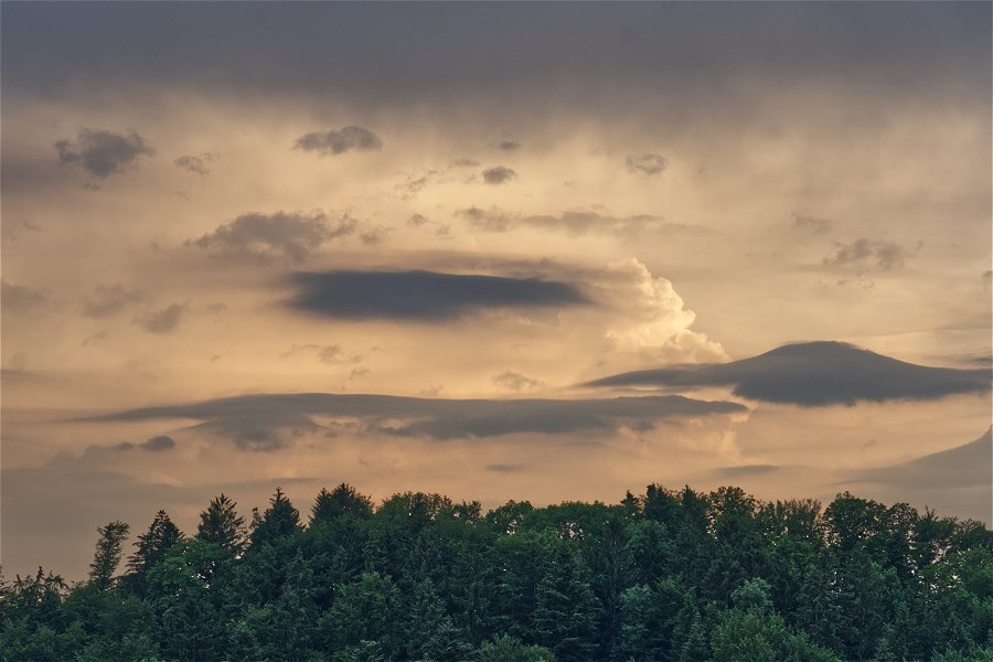 Wie üblich, sind wir im wenig spannenden Ambossland gelandet. Aber der Amboss zerfleddert mehr und mehr. Für kurze Zeit wurde der Blick auf die Westflanke des Interlaken-Brünig Gewitters frei, siehe Foto. Spannend die Lenticularis-Wolken, welche sich verdichten und nun auch Türmchen produzieren. Das Gewitter selbst hat Fahrt in Richtung NE aufgenommen, schwächelt allerdings zusehends. Aber im Vorfeld (Ex-Ambossland) könnte vielleicht noch was abheben. Daumen drücken