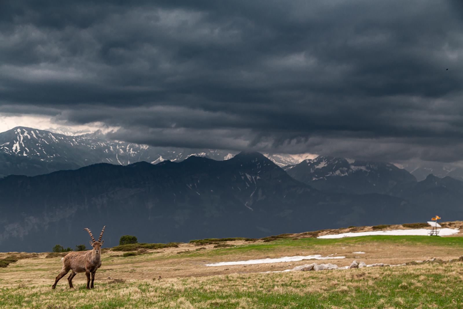 Anbei noch ein Schnappschuss- weder ein gutes Wetterfoto noch ein gutes Naturfoto, aber die ungeplante, zufällige Kombination hat mir gefallen: