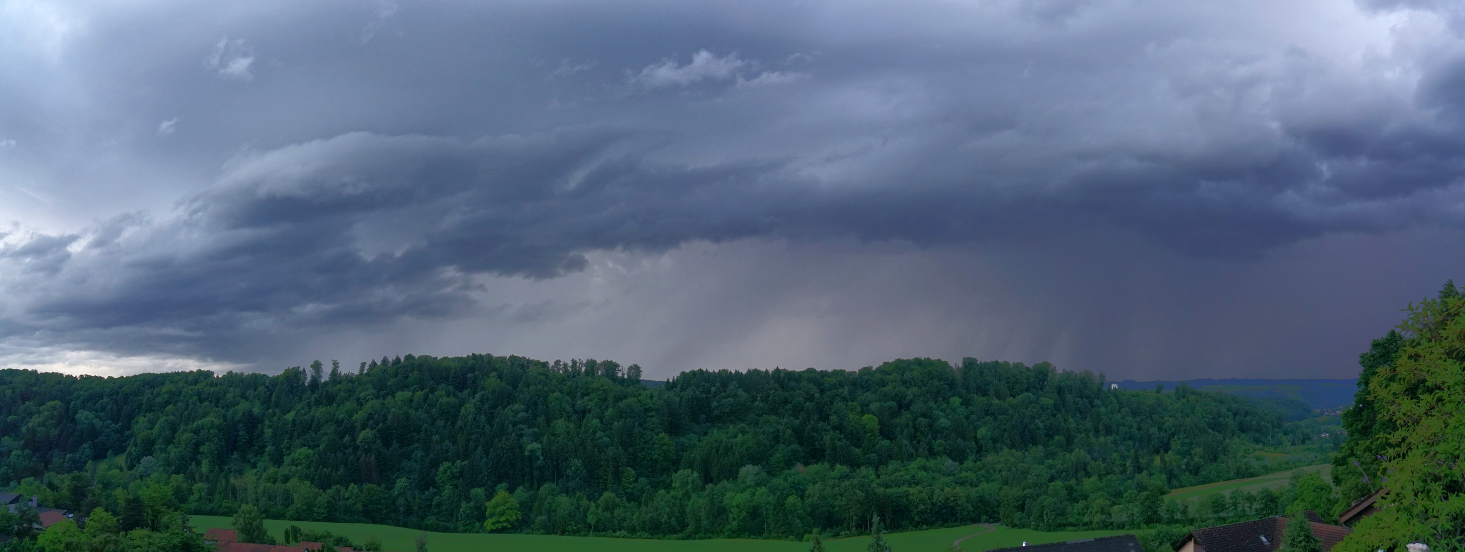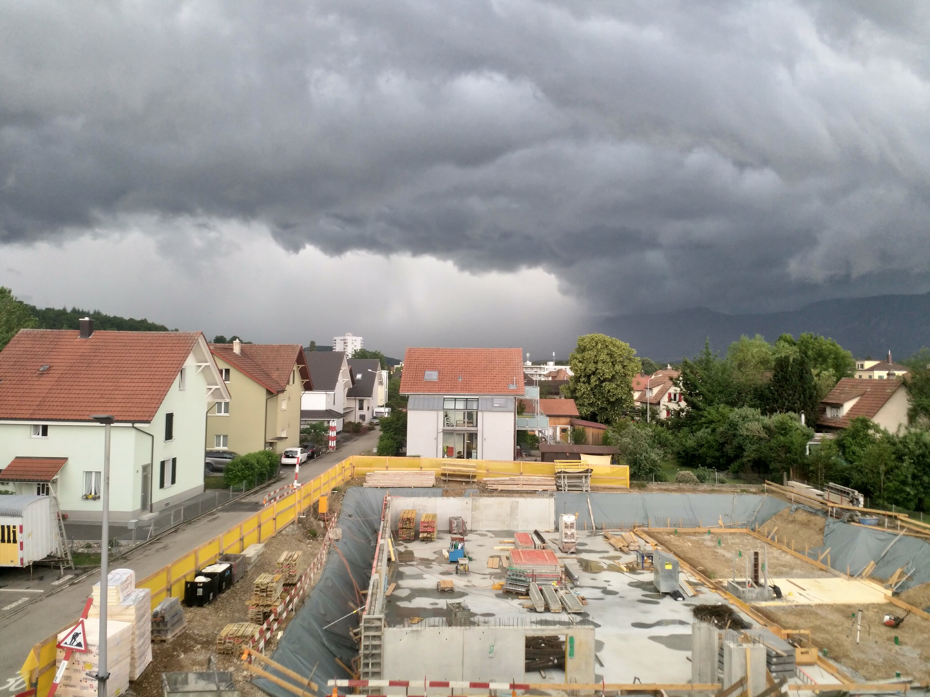 In Steinhausen ZG blieb es heute (von ein paar verirrten Tropfen mal abgesehen) trocken, aber der Vorbeizug der ersten Staffel um 17h war imposant. Eindrückliche Rotation im Aufwindbereich. Leider hatte ich vom Balkon nicht die gesamte Basis im Blick.
