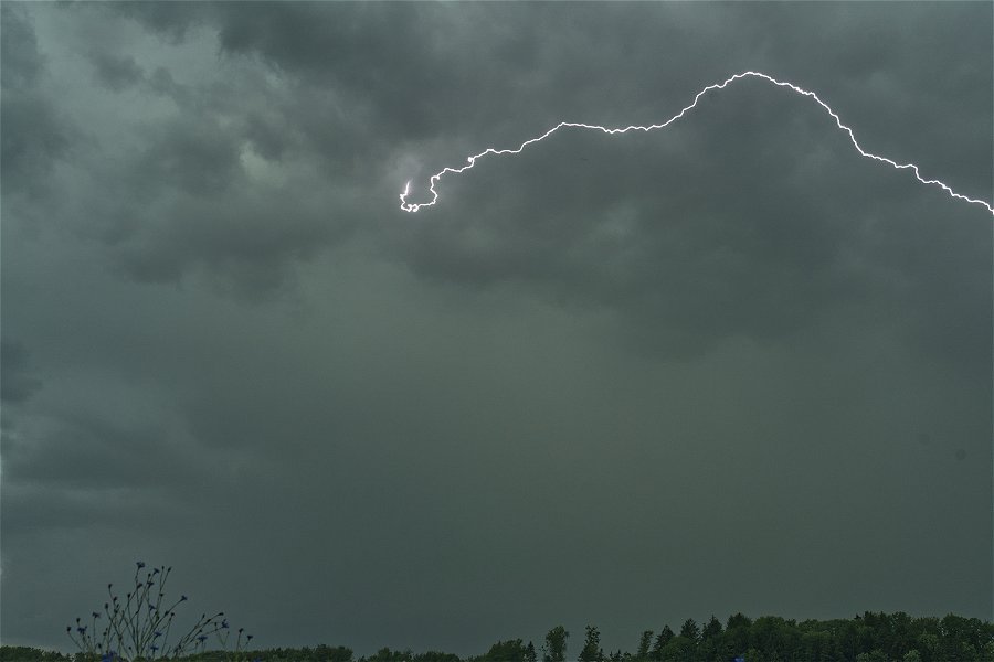 Das Zentrum der langlebigen Superzelle zog knapp südlich von Sellenbüren vorbei. Wind und Starkregen, mit wenigen Hagelkörnern bis 1.5 cm Durchmesser vermischt, setzen gleichzeitig um 1735 Uhr ein. Vorher war es praktisch windstill, obwohl es schon länger regnete und rumpelte. Sichtbare CC-Blitze gab es nur zu Beginn, dann war alles in den Wolken.