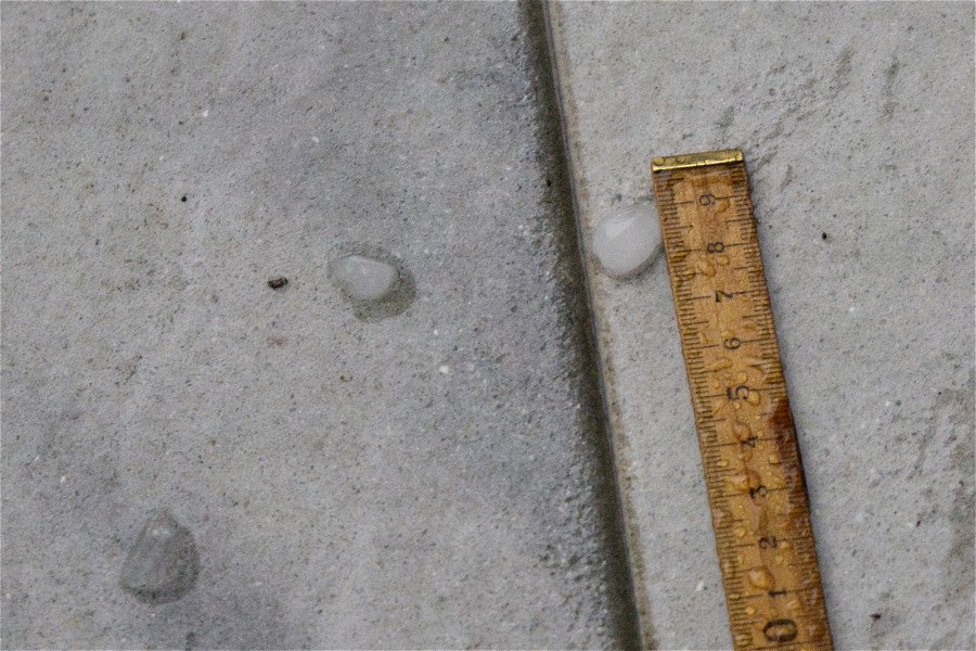 Vor und während dem Durchzug der Zelle war der Himmel grau in grau. Nur gegen Süden, in Richtung des Zentrums, war vorübergehend etwas Struktur zu erkennen. Mit Kontrastmittel im Bild wurde es sofort dramatischer als es in Natur aussah. In Aeugst, 9 km südlich von Sellenbüren, hat ein Kollege Hagelkörner bis 4 cm Durchmesser gesammelt.