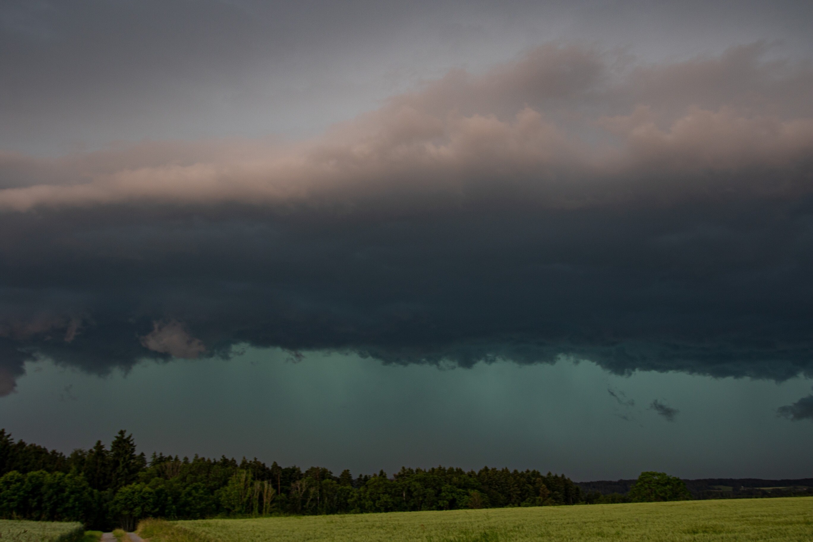 Philippe hat einen Input gegeben. Ich denke ich weiss wie es gemeint ist, jedoch verstehe ich zu wenig, um dies auch wirklich nachvollziehen zu können. Was mir aufgefallen ist, ist dass das Unwetter so langlebig war, dass es nicht outflow-dominant wurde, sich über weite Strecken nicht verzettelte und der Sturm erst kurz vor dem Einsetzen des Niederschlags loslegte. Darüber hinaus eine eindrückliche, nie zuvor gesehene türkisfarbene Stimmung vor dem Unwetter.