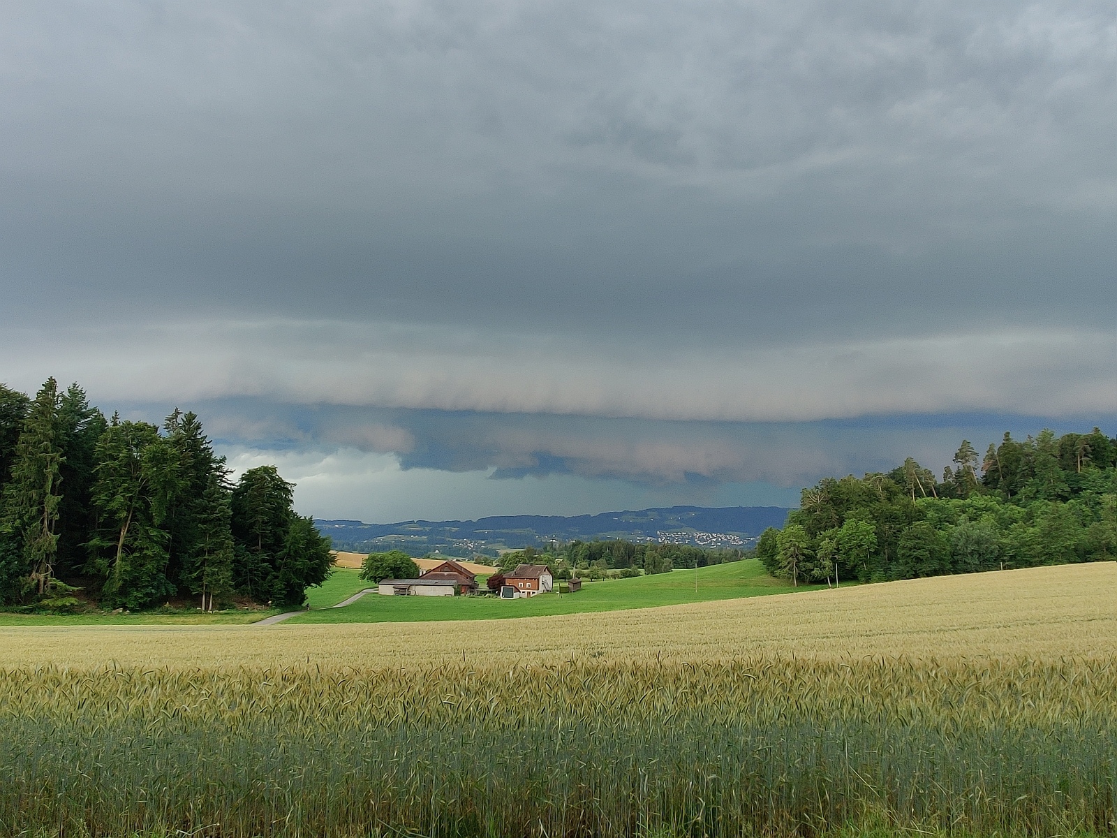 Ich hatte mich, in der Erwartung, dass die Zelle die gleiche Bahn einschlägt wie die vom 20.06.2021, in der Nähe von Russikon platziert. Das Gewitter schlug aber einen anderen Weg ein und so bekam ich einen vollen Corepunch ab.