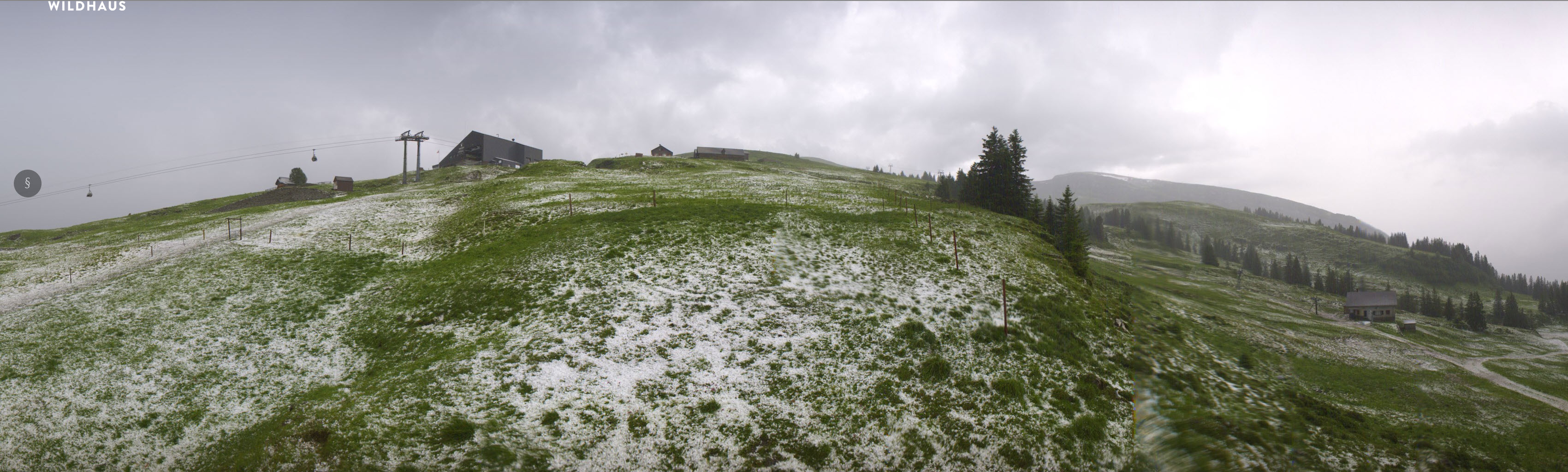 Der Hagelkern intensiviert sich wieder. Alt Sankt Johann und Wildhaus scheinen einen Volltreffer abbekommen zu haben. Hier an Webcambild von Wildhaus: