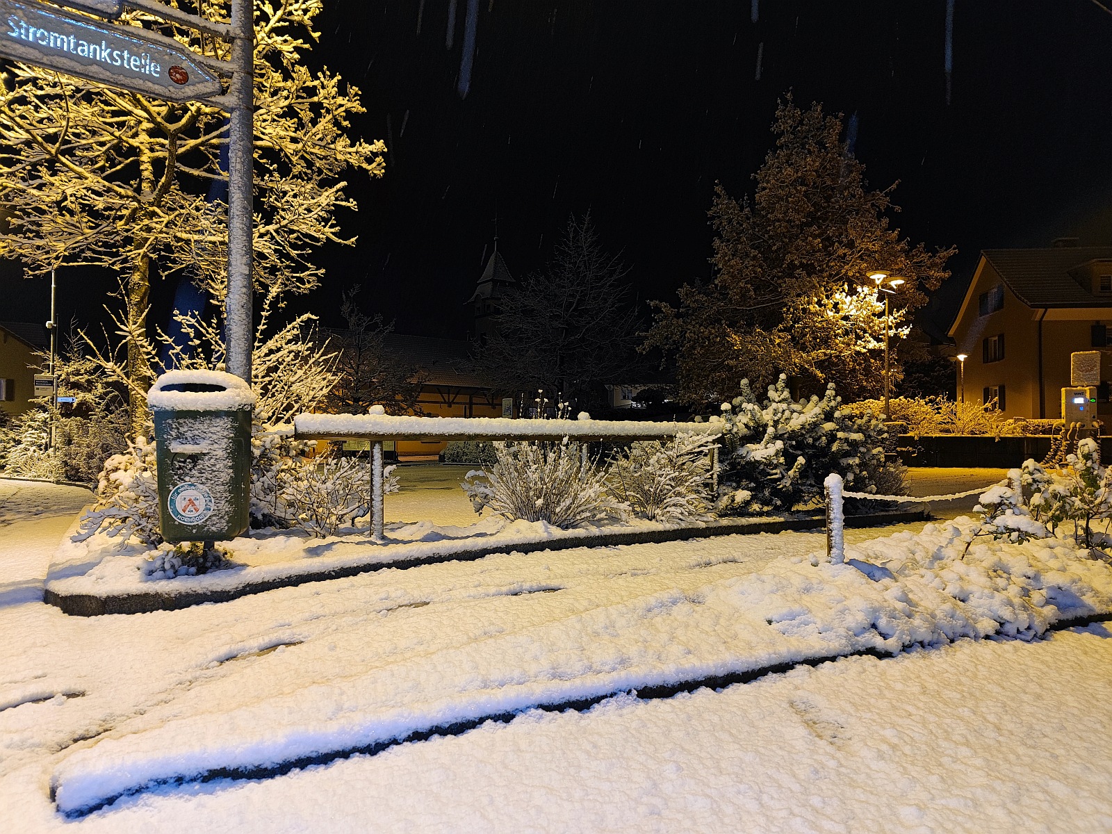 Bei uns in Küssnacht gerade soeben ein grossflockiger Schneeschauer. Die Schneedecke hat schon einige cm inklusiv auf den Strassen.
