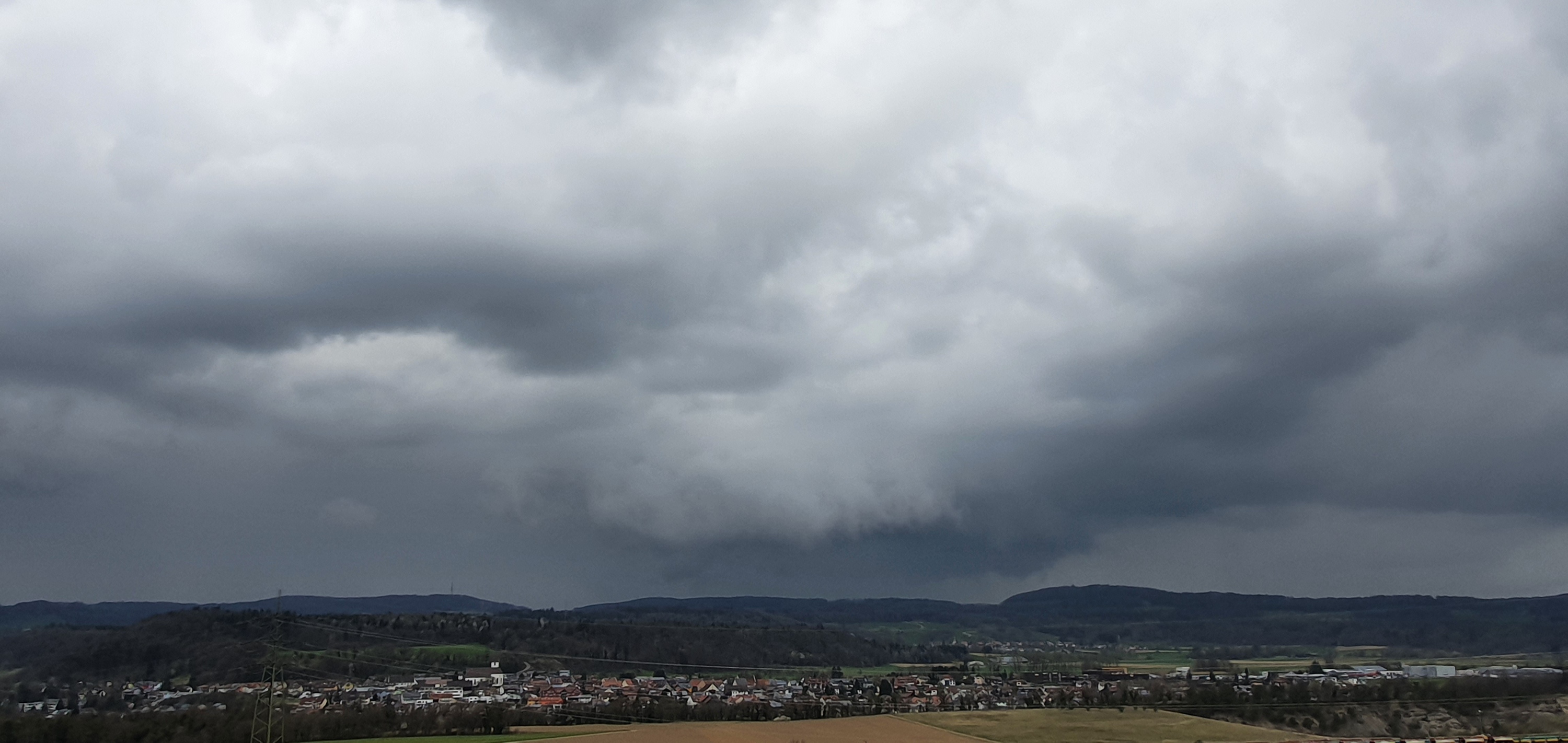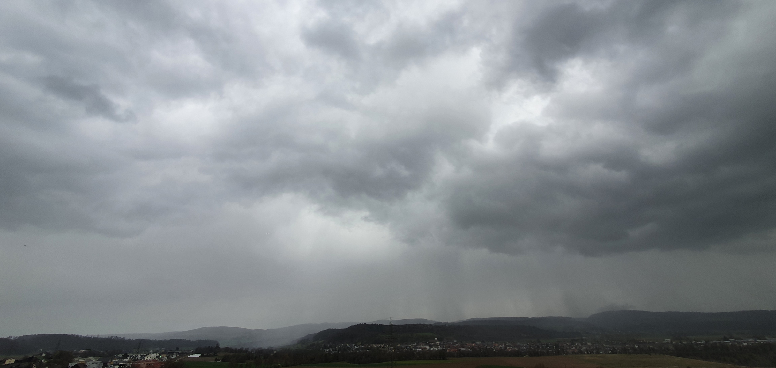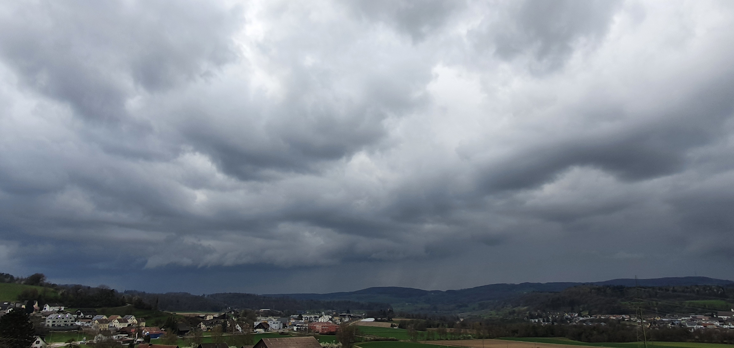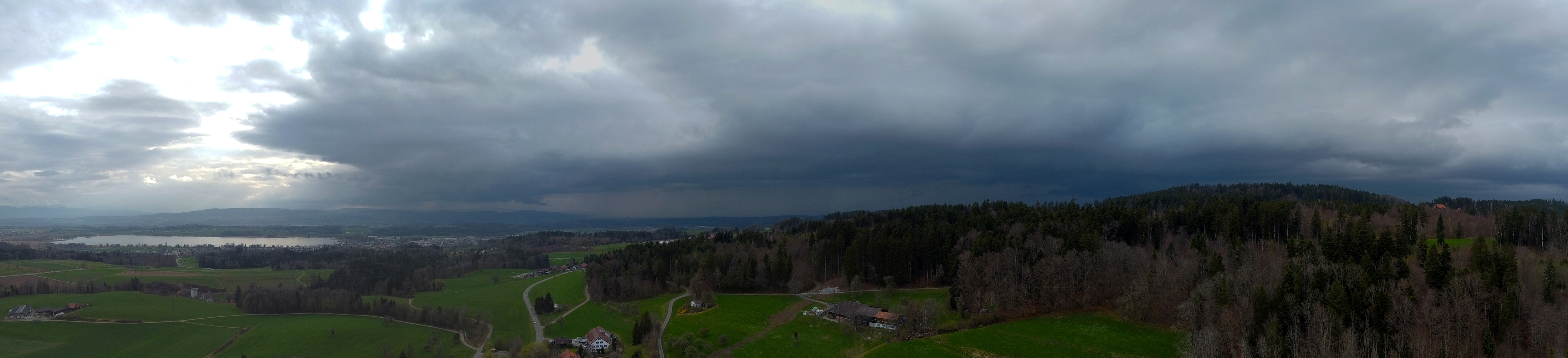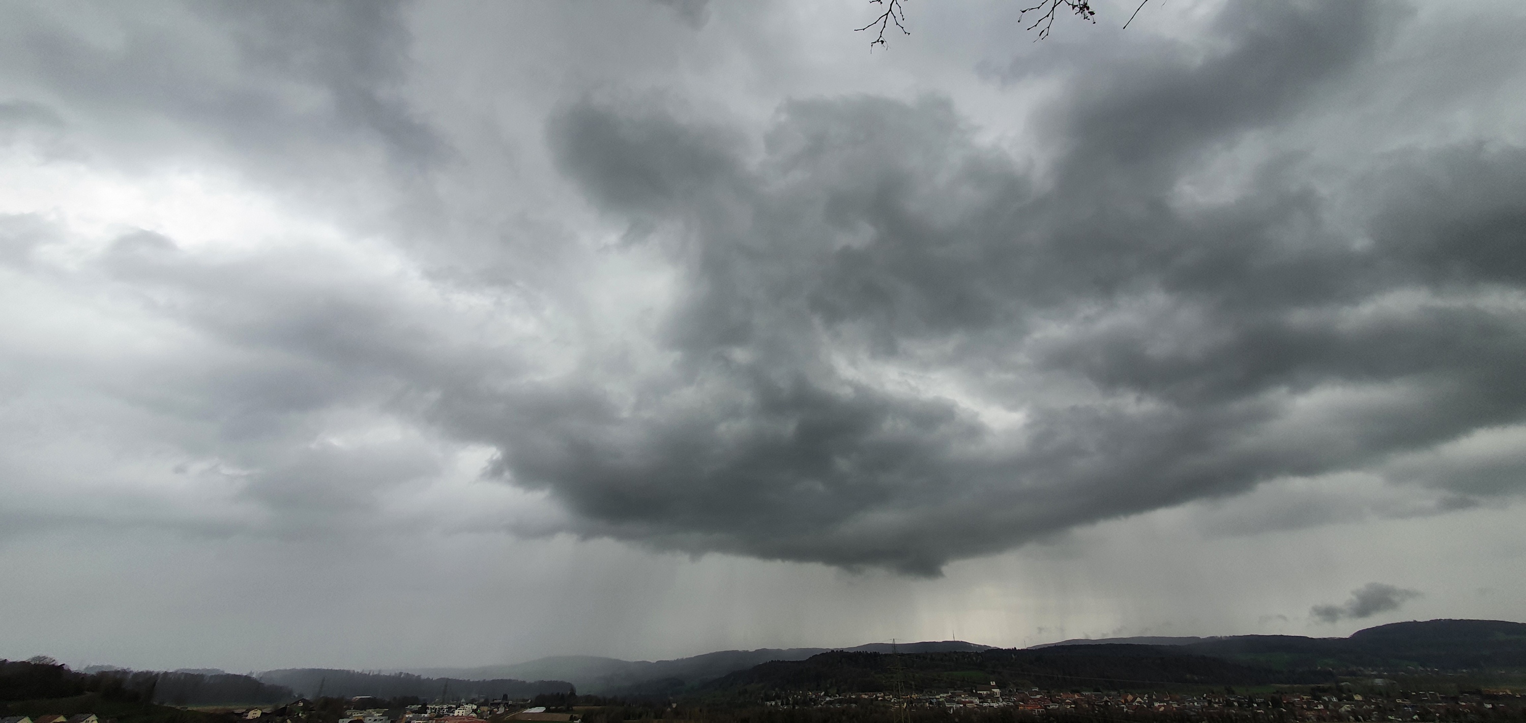 In Hittnau sind nur noch ein paar Tropfen angekommen. Aber immerhin war der Aufzug eine gute Gelegenheit für ein paar Testaufnahmen mit der neuen Drohne
