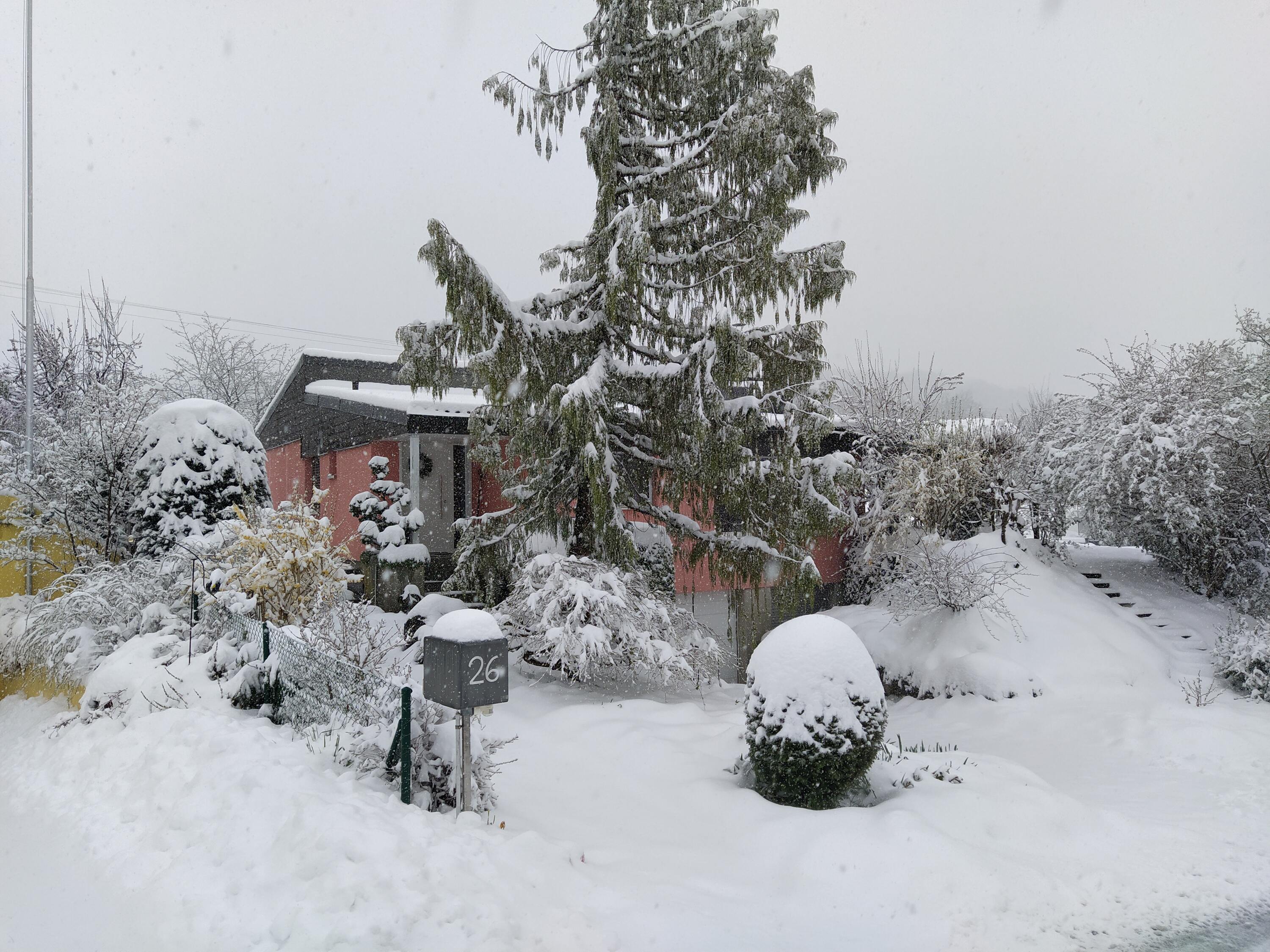 Wahnsinn, was hier erhöht auf dem Gempenplateau in der NW-CH seit gestern runtergekommen ist. Erst stundenlang recht kräftiger Dauerregen, teils fast Monsunfeeling. Irgendwann nachts Übergang zu Schneefall und heute um 12h in Hochwald auf 620-650m bereits um 10cm Schnee.