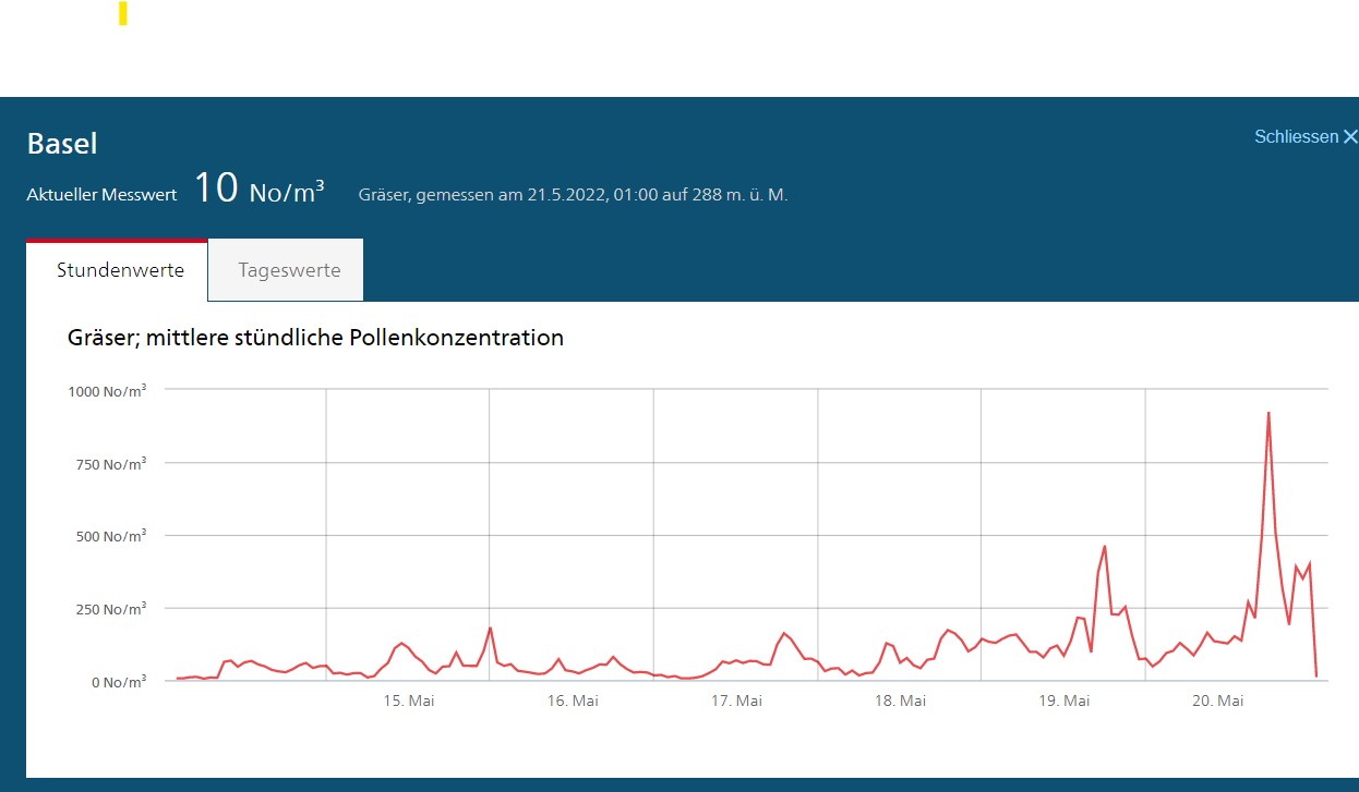 Dadurch hats die Pollenbelastung nach den bemerkenswert hohen 923no/m3 (vor den Gewittern bei 50km/h) endlich fast gegen 0 gedrückt: