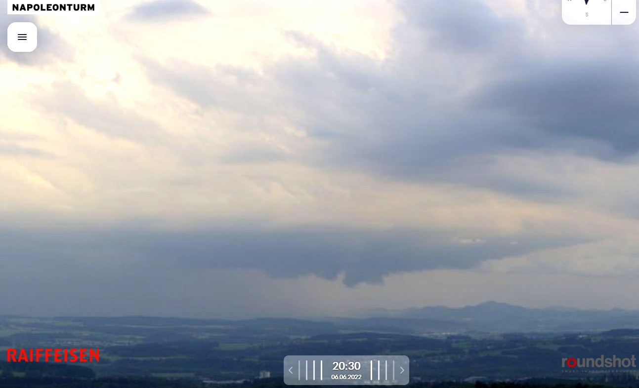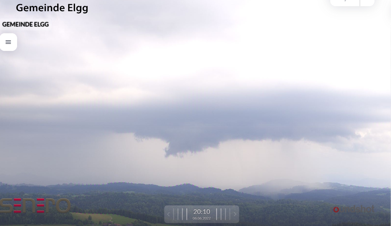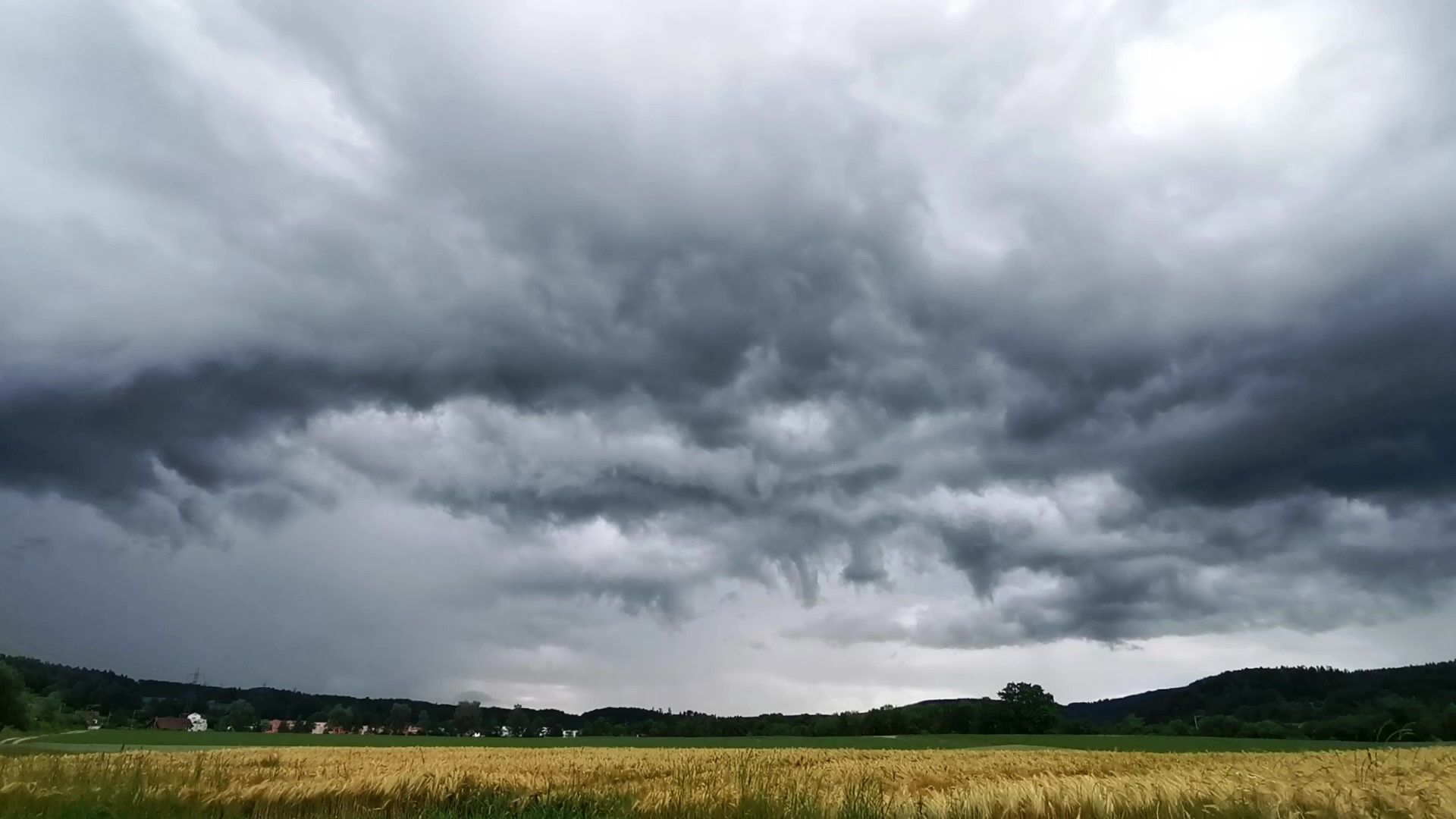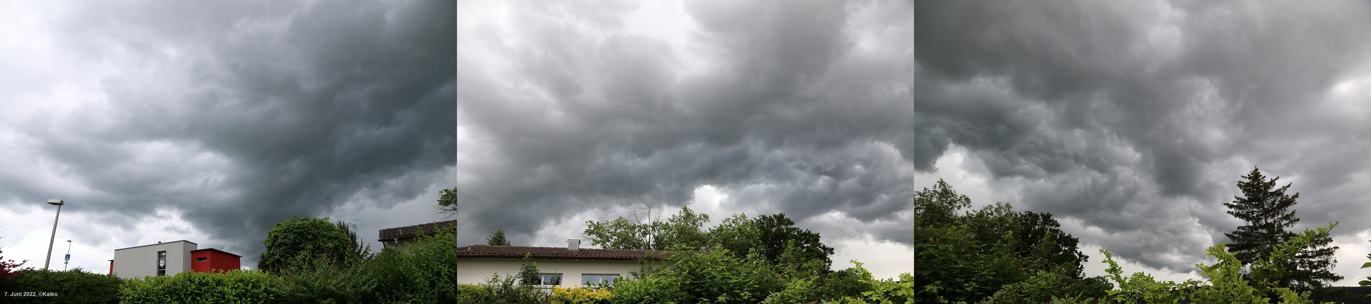 Kurz danach Kameraschwenker von SE nach SW. Es nähert sich ein neues Gewitter direkt auf mich zu. Rechts im Bild der kommende Niederschlag, rauschte wie ein Sturzbach, und die Lautstärke nahm kontinuierlich zu (Audio dazu folgt später). Dann kurze Babywasserbombe mit Körnchen bis 1 cm Durchmesser. Da es kaum Wind gab, verirrten sich nur sehr wenige Körner auf meine Terrasse. Bei Meteosvizzera in der Nähe gab es 5 mm Niederschlag.
