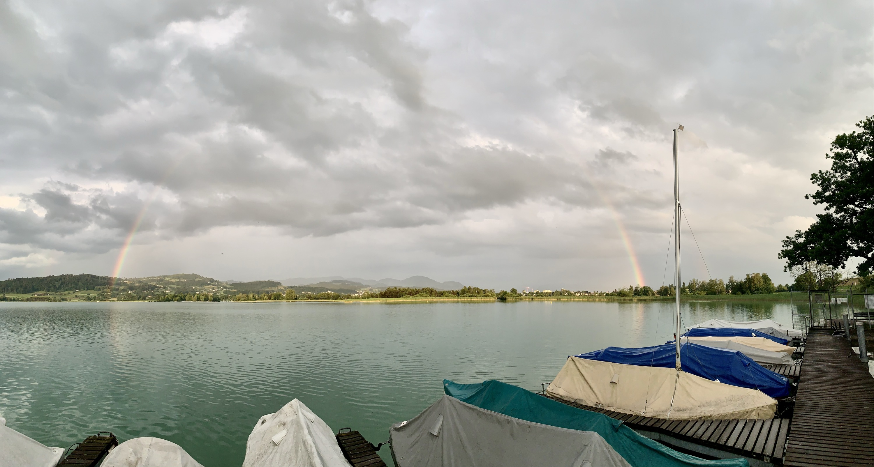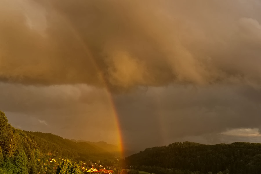 Das finale Zellchen bildete sich über meinem Kopf und donnerte 2x. Natürlich war ich wieder zu spät dran, aber die Stimmung mit Regenbogen in der untergehenden Sonne war einmalig, ein toller Abschluss von zwei tollen Tagen.