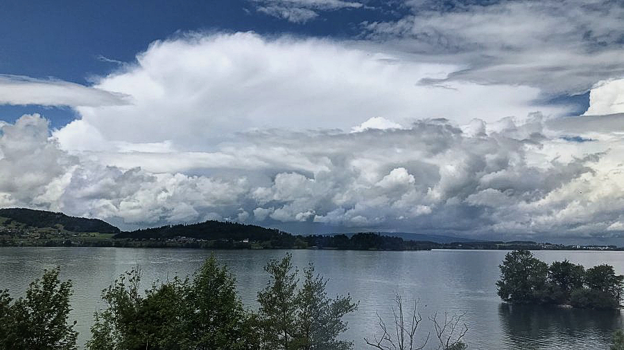 Am Zugersee, auf der Rückfahrt, gab's einen schönen Ausblick auf diesen Amboss in Richtung Norden ca. Den Kern dieses Gewitters durchfuhr ich mit dem Postauto zwischen Müliberg und Stallikon. Es war Starkregen ohne Hagel.