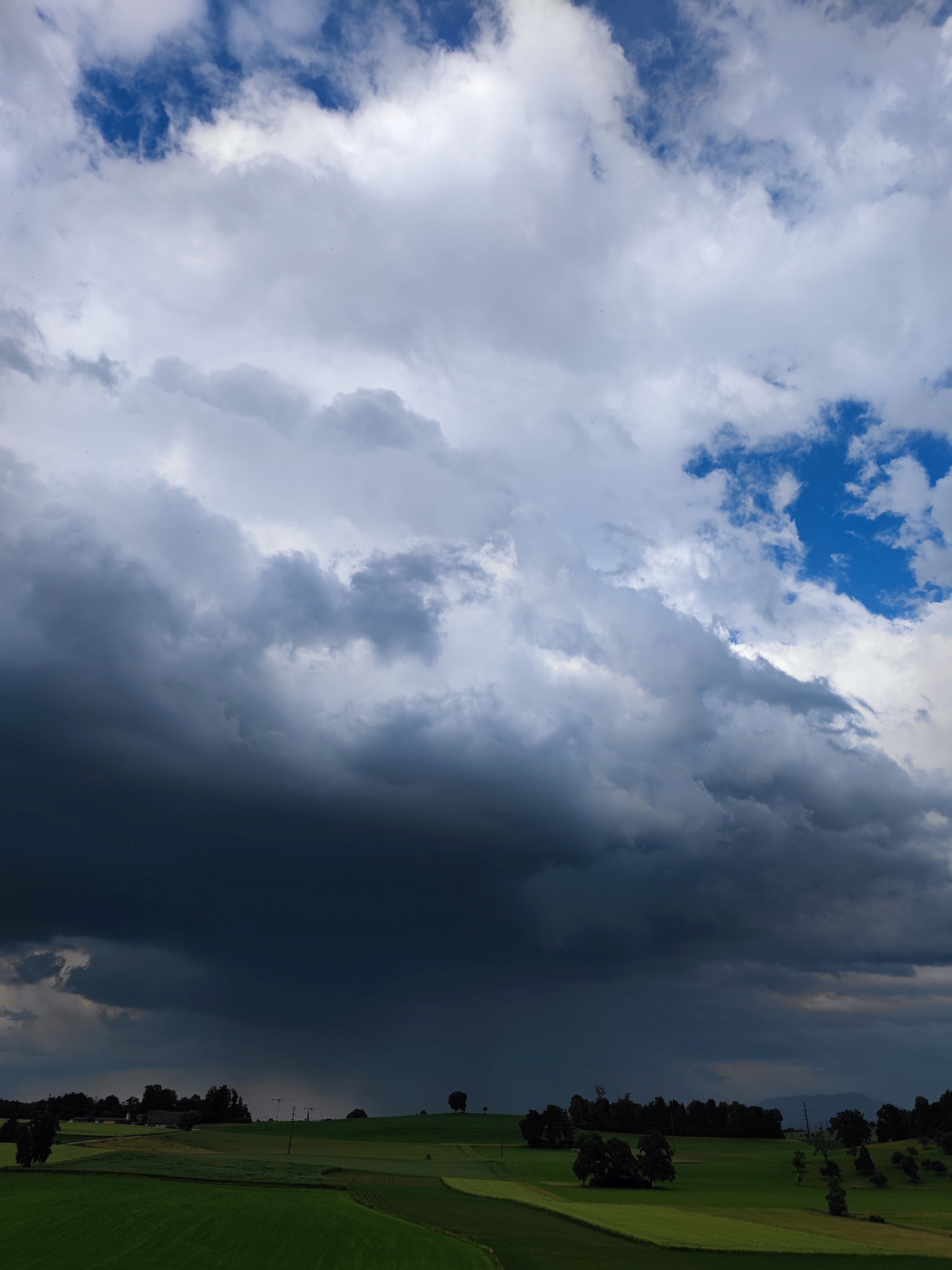 Bald danach der erste Blitz. Es sollte der einzige sichtbare Blitz bei diesem Gewitter bleiben. Es zog nordostwärts und entwickelte sich erfreulich.