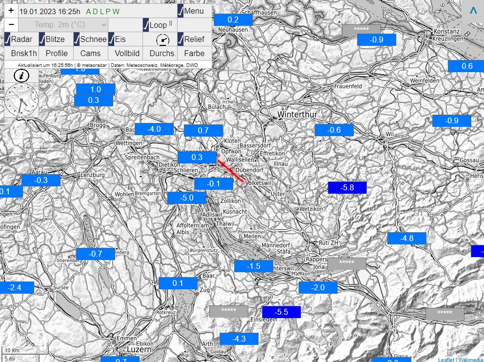 Es würde passen. Kloten und Tänikon (ohne Schnee) sind bsp. leicht im Plus, Wädenswil und Lachen (mit Schnee) klar im Minus. Normalerweise ist es eigentlich eher umgekehrt. Auch weiter westlich gibts diesen Unterschied, bsp. im Kanton Bern.