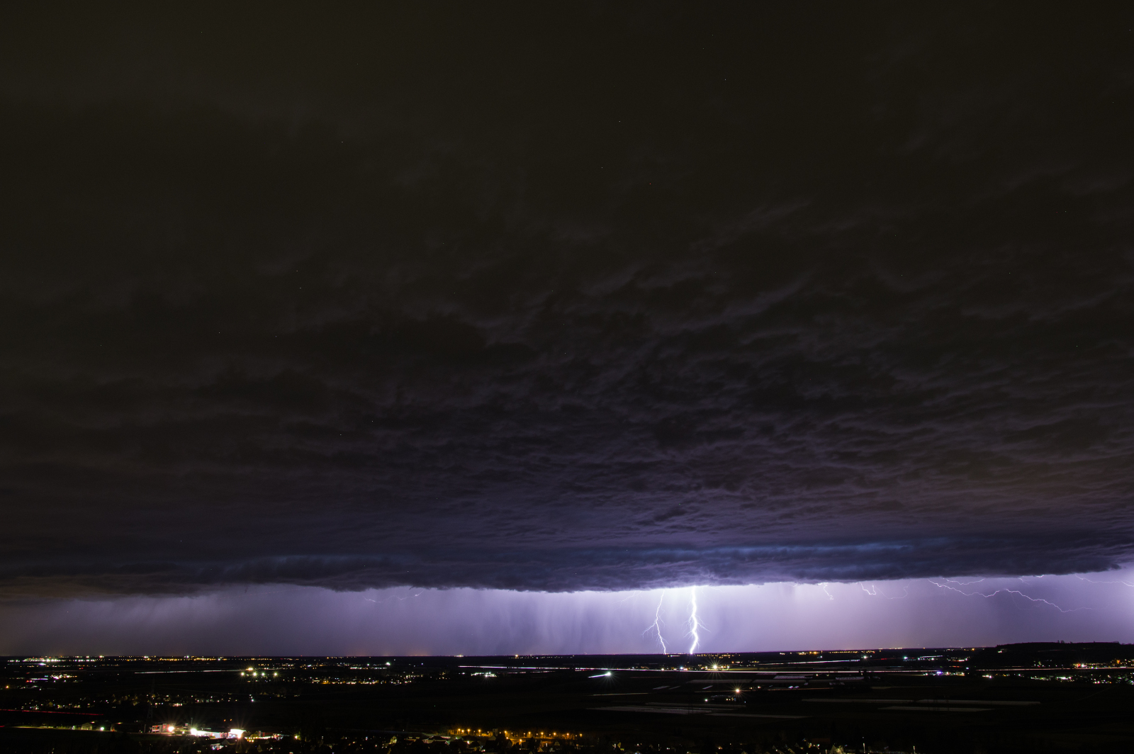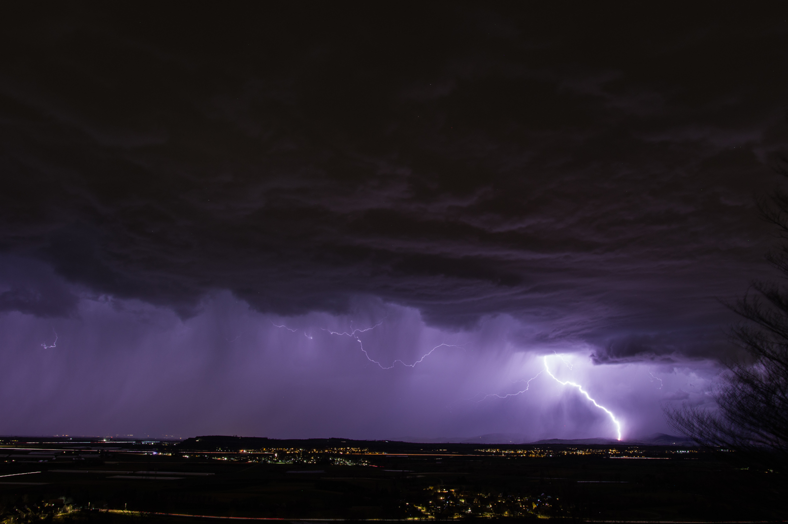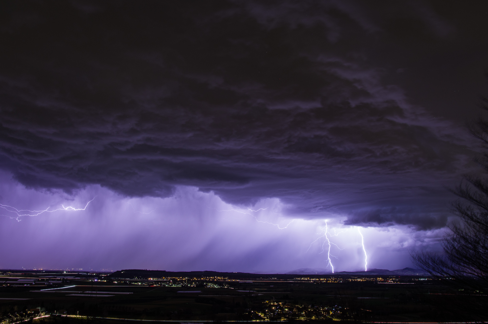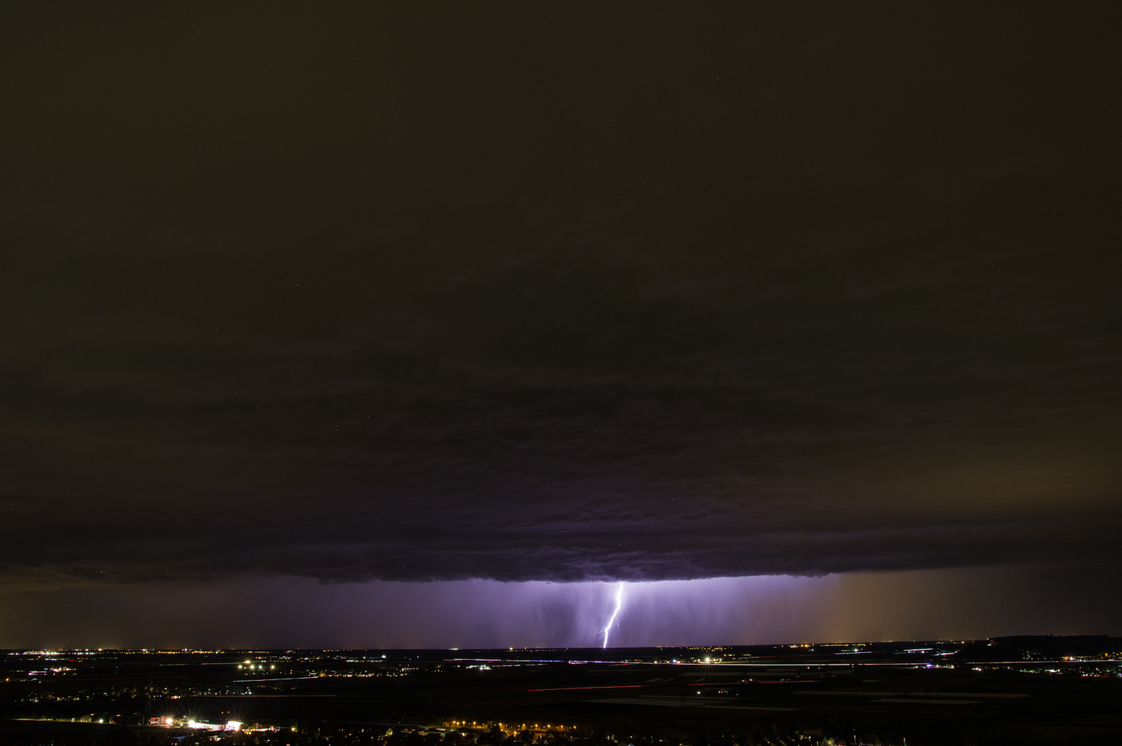 hatte heute Glück und konnte die Gewitter im Oberrheingraben beobachten. Eine Zelle zog noch bei Tageslicht zwischen 18 und 19 Uhr aus Frankreich kommend durch den Rheingraben, die sich erst jetzt gegen 22.15 Uhr an der Grenze zu Tschechien über Bayern aufgelöst hat. Zu ihr poste ich die Tage noch zwei-drei Bilder, war im Rheingraben nicht so spektakulär...